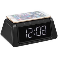 Часы настольные с беспроводным зарядным устройством Pitstop, черные