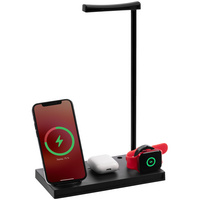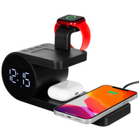 Зарядная станция с часами E-Store для смартфона, часов и наушников, черная