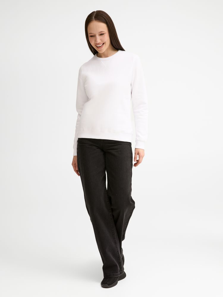 Женская утепленная толстовка с круглым вырезом и декоративной треугольной вставкой. Лейбл производителя в боковом шве изнутри, в шве горловины — только бирка с размером, что позволяет вам нанести свой логотип.