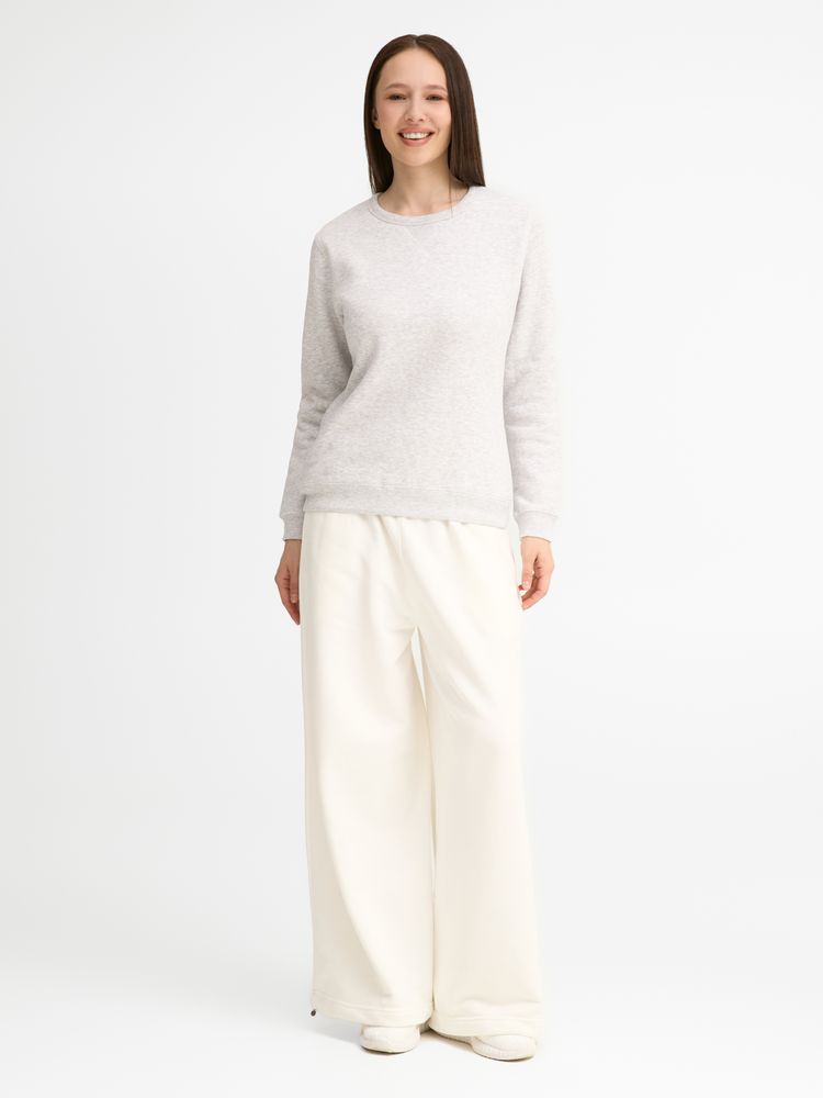 Женская утепленная толстовка с круглым вырезом и декоративной треугольной вставкой. Лейбл производителя в боковом шве изнутри, в шве горловины — только бирка с размером, что позволяет вам нанести свой логотип.