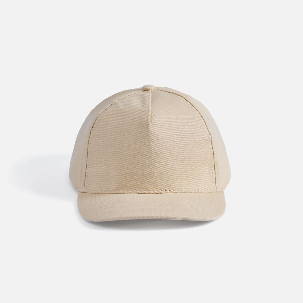 Модель бейсболки с 5-ю клиньями без лобового шва из плотного чесаного хлопка.