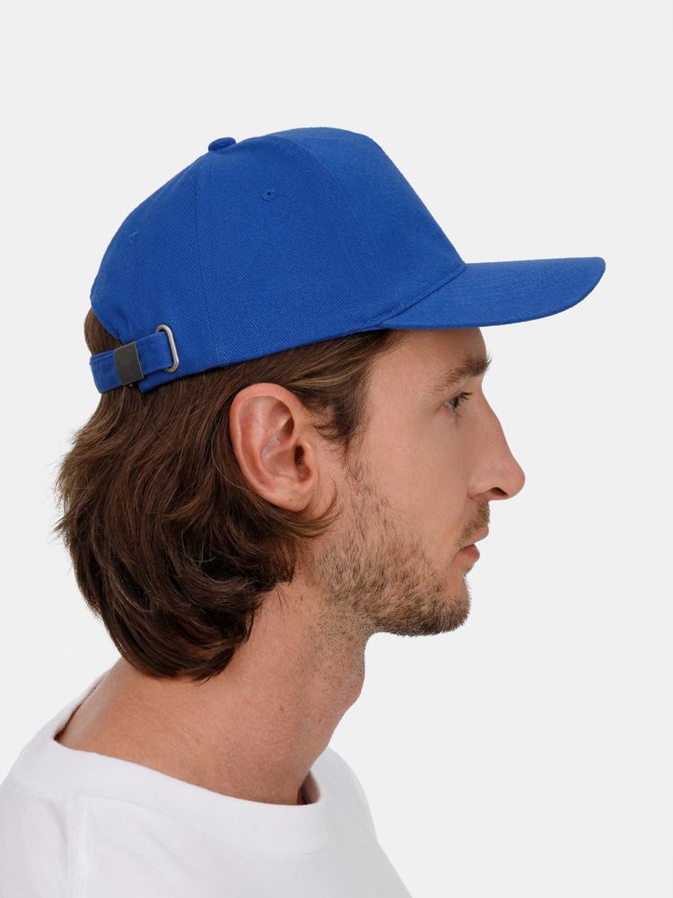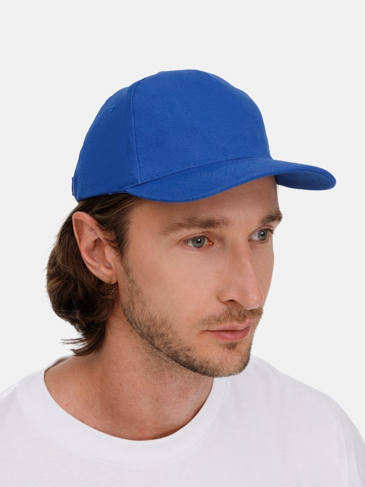 Модель бейсболки с 5-ю клиньями без лобового шва из плотного чесаного хлопка.