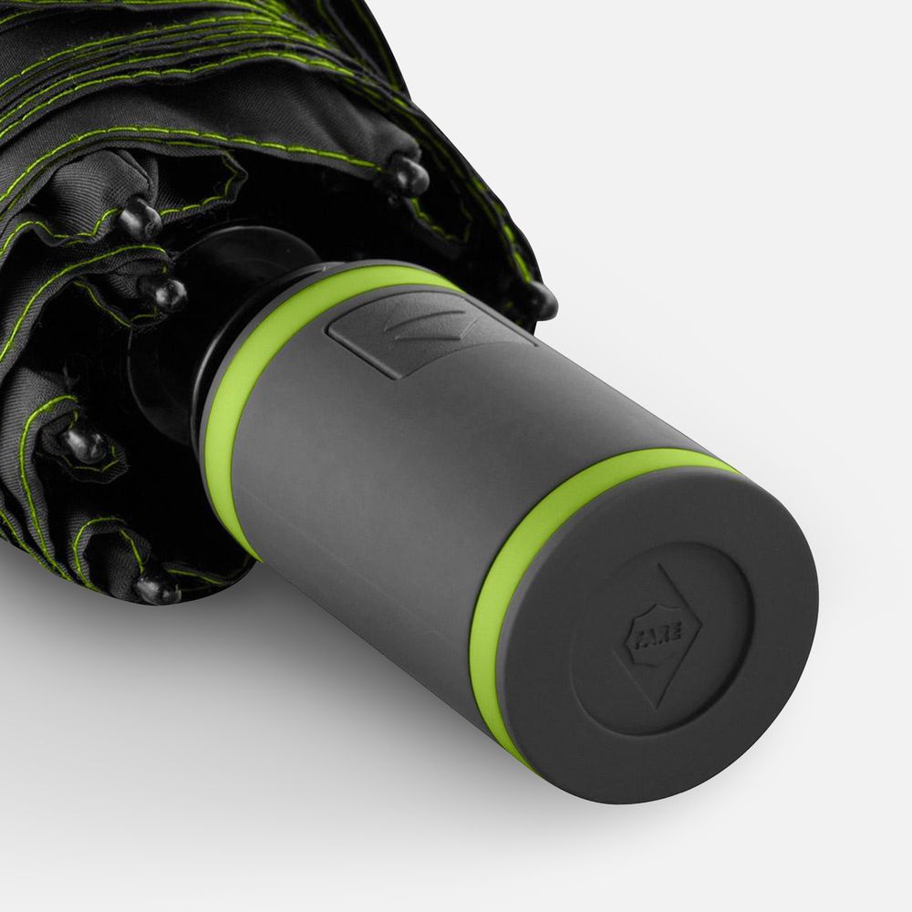 Купол зонта AOC Mini произведен из сертифицированного OEKO-TEX полиэфирного эпонжа из переработанного пластика, окрашенного по технологии waterSAVE. Новый процесс окрашивания — непосредственно в процессе производства материала — снижает потребление электричества, воды и химически активных веществ.