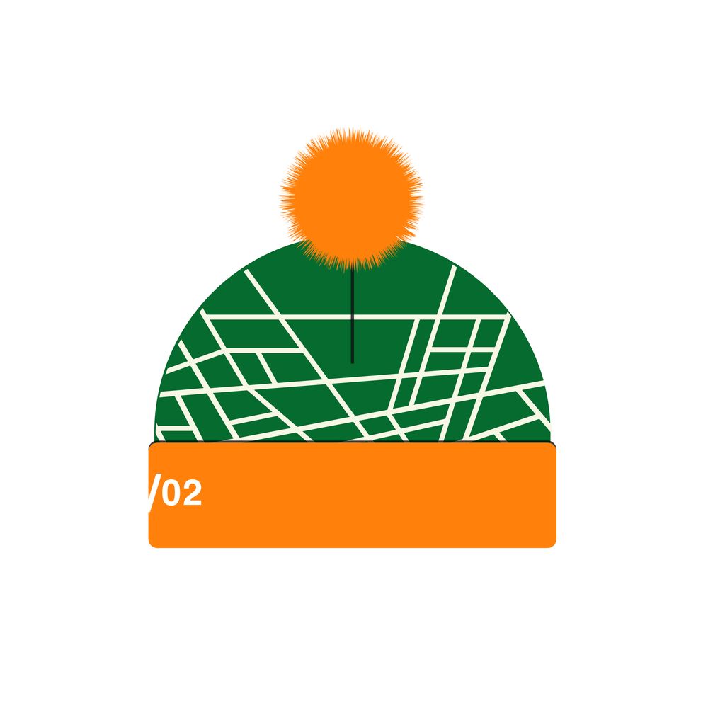 Шапка с вывязанным логотипом и индивидуальным рисунком в фирменной цветовой гамме.