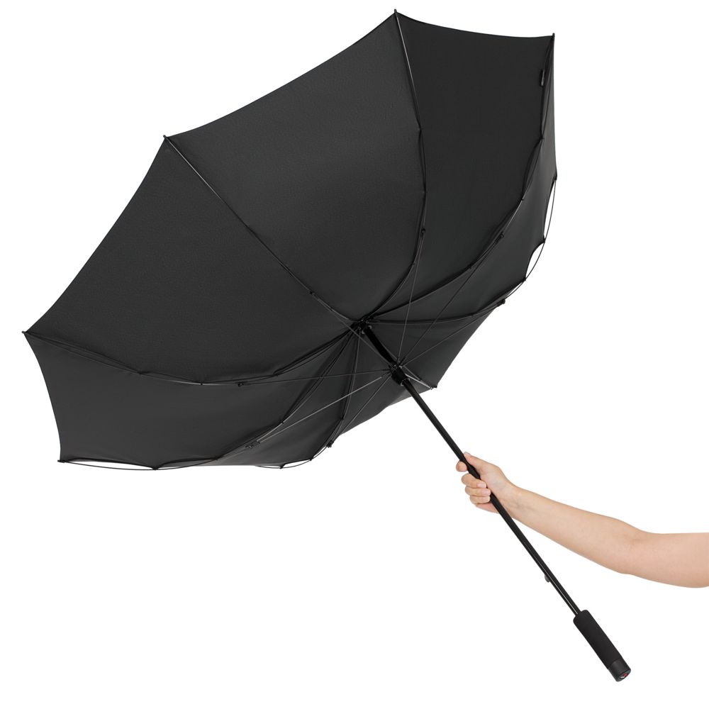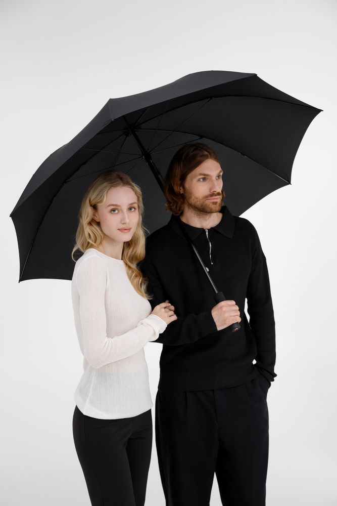 Сверхлегкий, сверхпрочный и со сверхбольшим куполом! Зонт весит всего 255 г, а под его куполом диаметром 130 см легко укрыться от непогоды вдвоем. Каркас из алюминия и карбона выдерживает скорость ветра до 120 км/ч без повреждений.