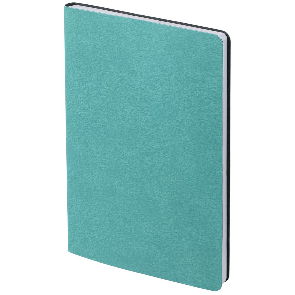 Ежедневник с гибкой обложкой, выполнен из материала Latte, бирюзовый, дополнен ляссе в цвет обложки.