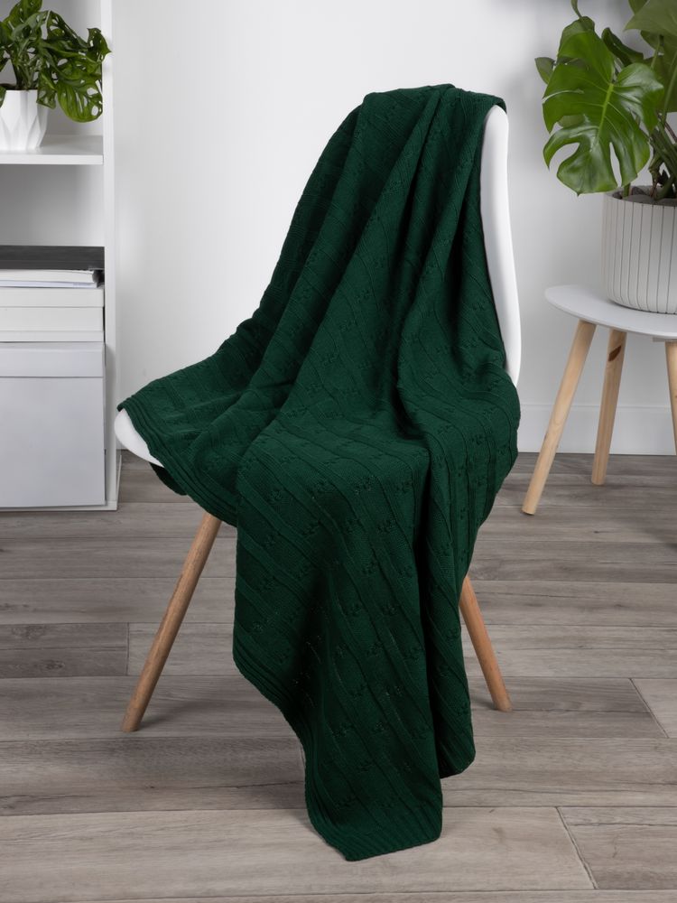 Вязаный плед фактурной вязки из меланжевой пряжи.