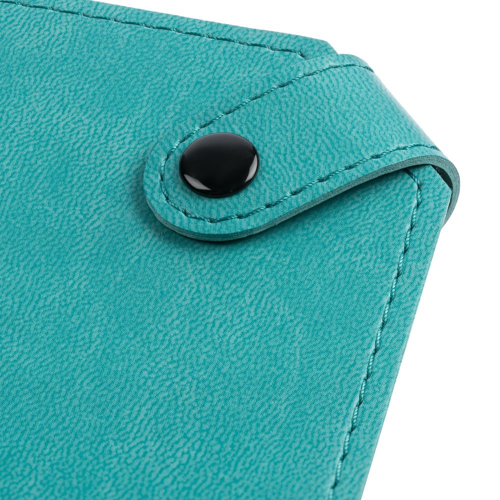 Ежедневник с гибкой обложкой и тонированным обрезом. Выполнен из материала Latte, морская волна II, дополнен черным ляссе.