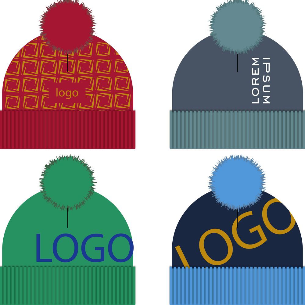 Шапка с вывязанным логотипом и индивидуальным рисунком в фирменной цветовой гамме.
