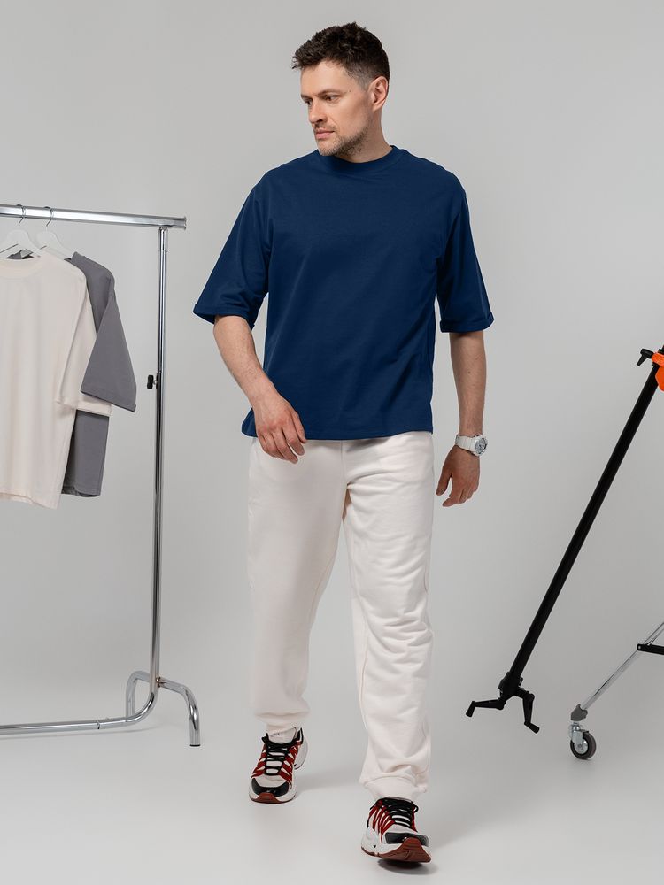 Футболка унисекс свободного кроя со спущенным плечом и смещенными плечевыми швами.