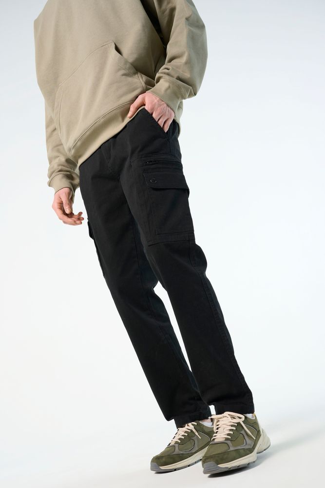 Мужские брюки современного кроя с застежкой-молнией и металлической пуговицей. Петельки для ремня, передние косые карманы.