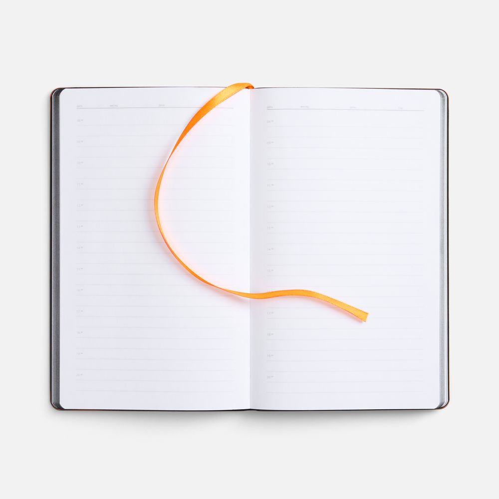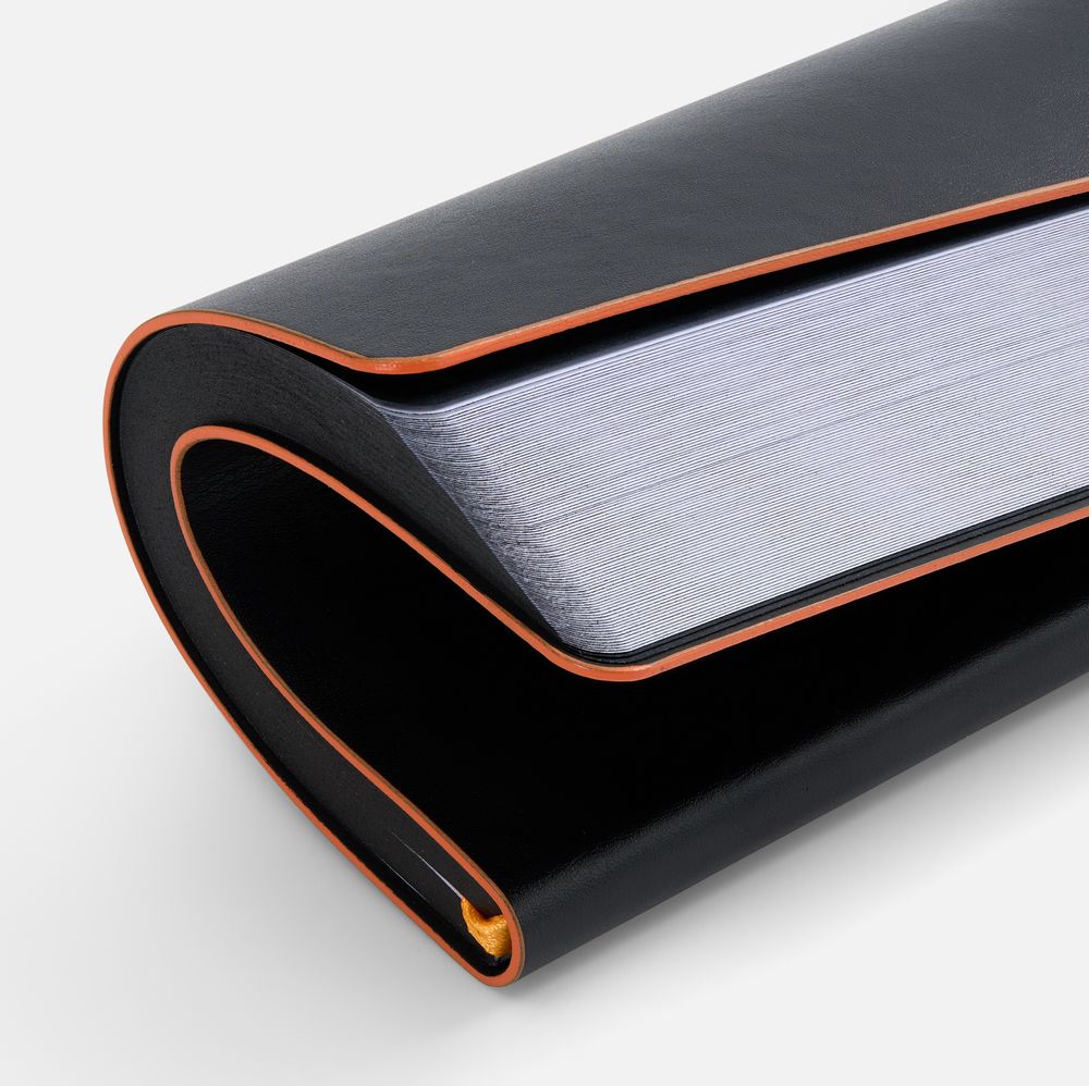 Обложка ежедневника Trait — это максимальная концентрация черного, подчеркнутая яркой полосой цветного среза.