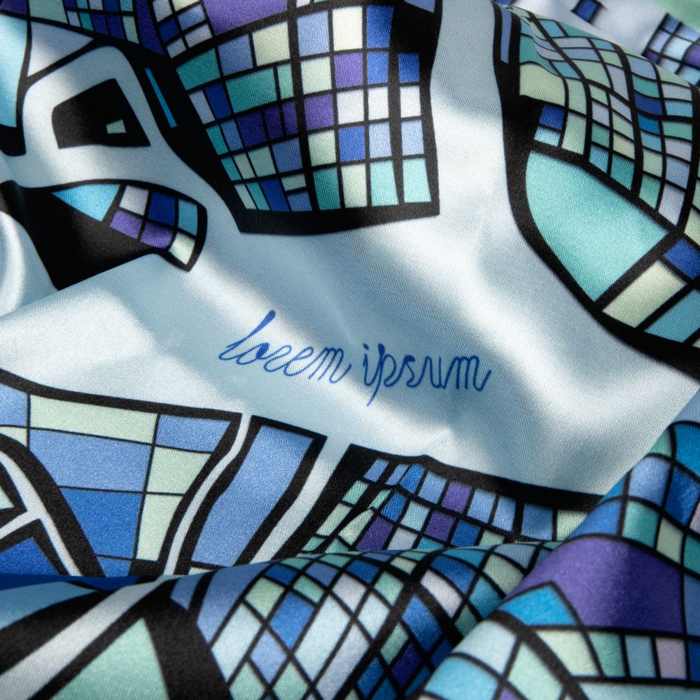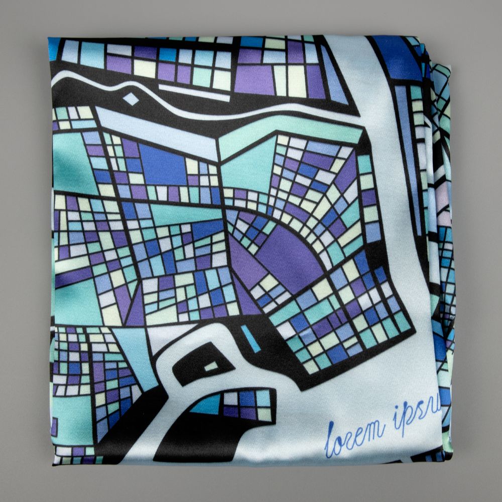 Платок из шармуса, подходящего для сублимационной печати. Края обработаны оверлоком.