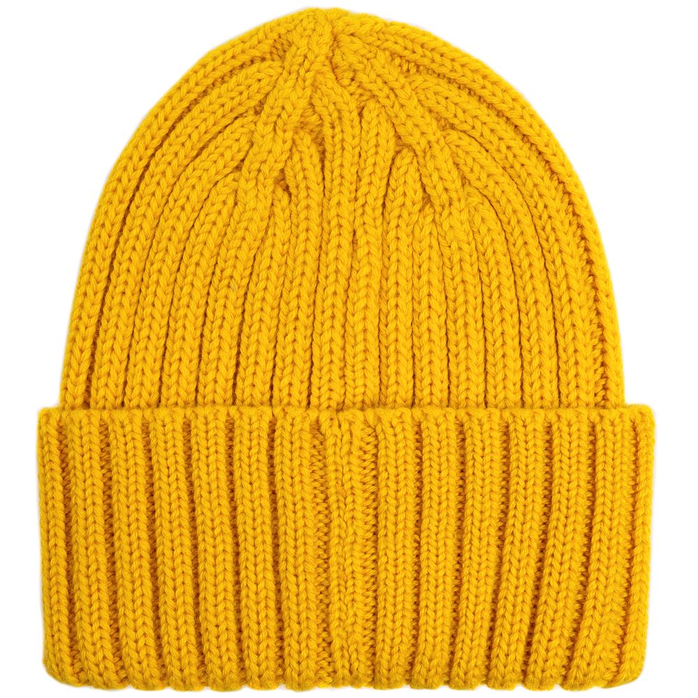 Однослойная шапка рельефной вязки с отворотом.