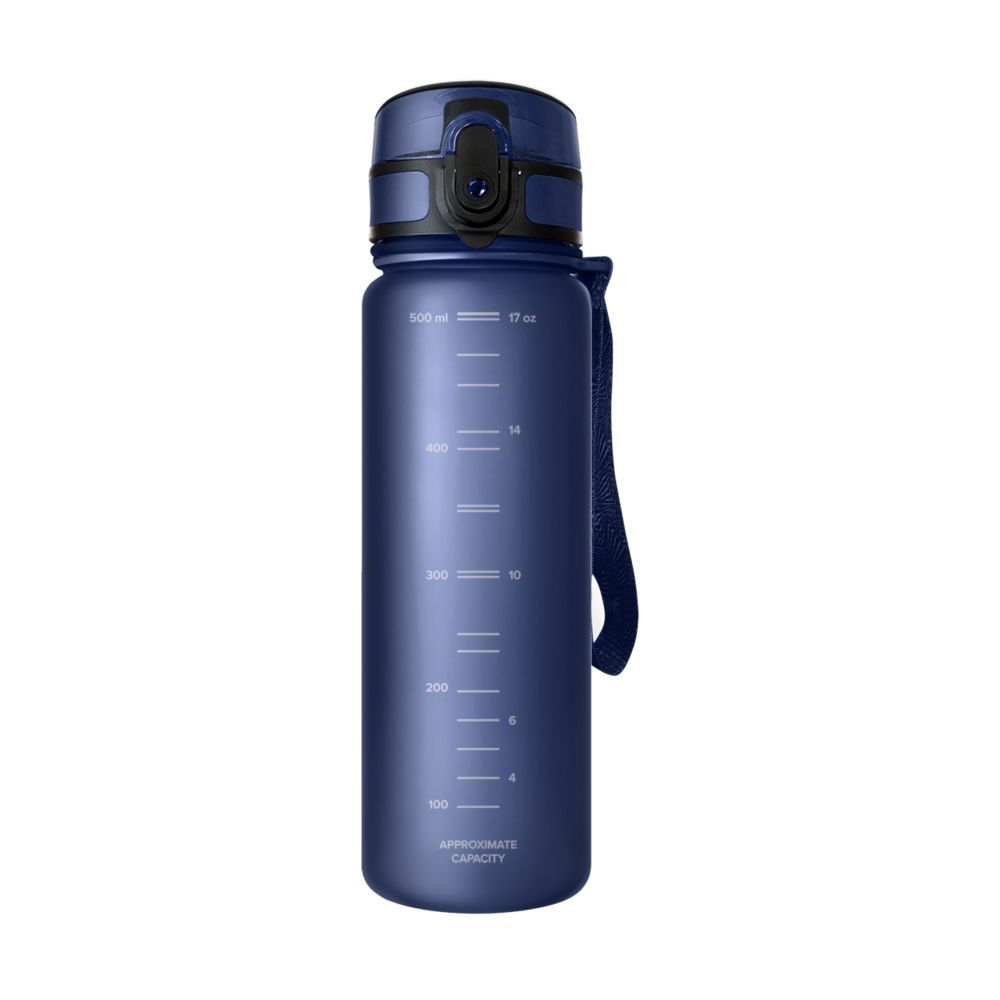 Матовое бархатистое покрытие бутылки приятно на ощупь, широкий ремешок дополнительно фиксирует бутылку во время использования, защитный колпачок не даст воде пролиться в сумке.