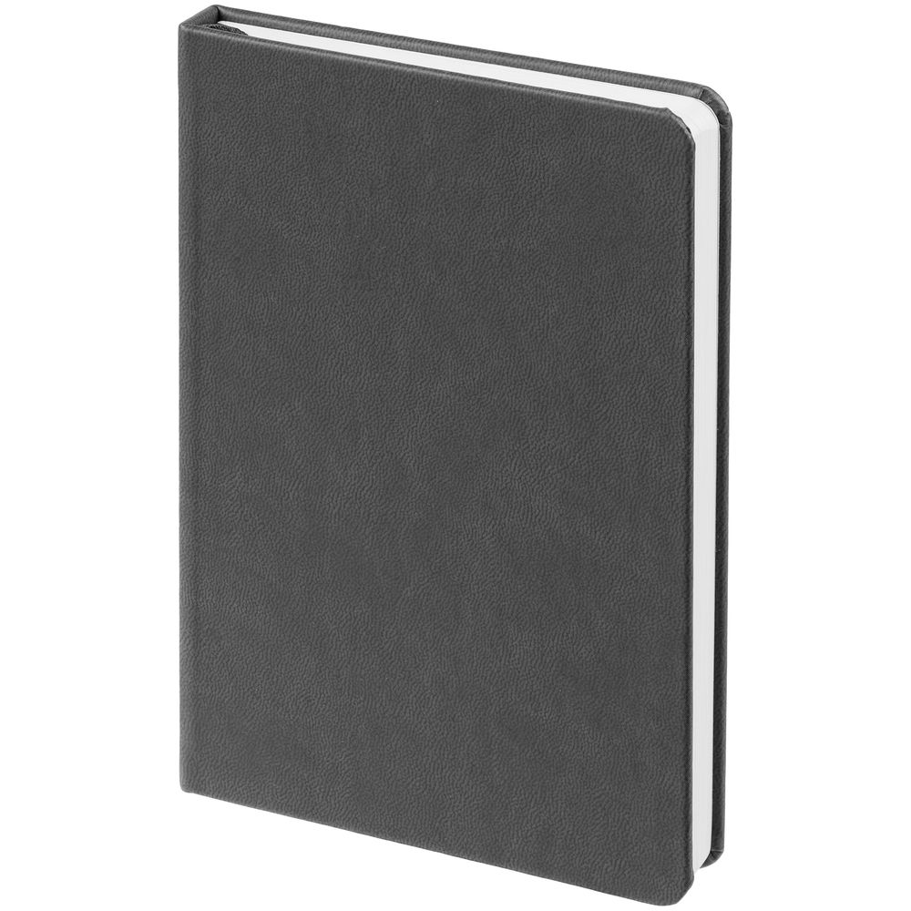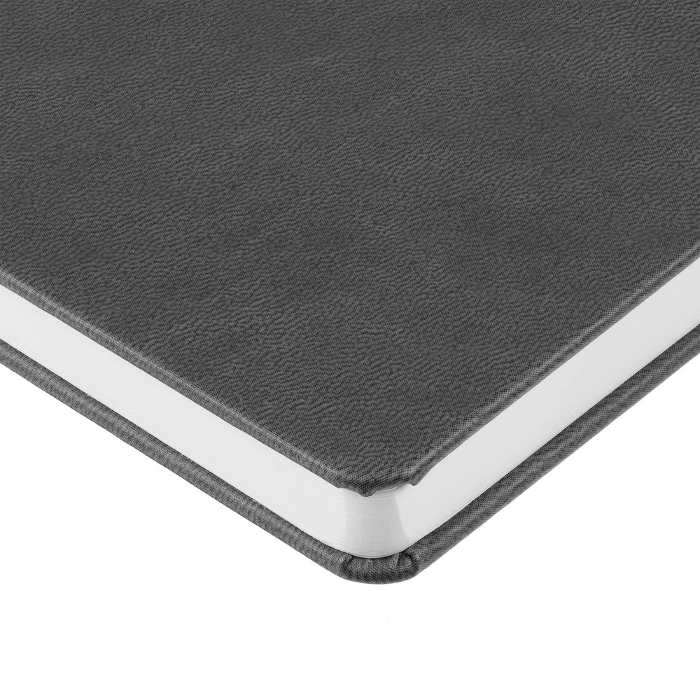 Ежедневник с твердой обложкой, выполнен из материала Latte, темно-серый ЕЕ, дополнен ляссе в цвет обложки.