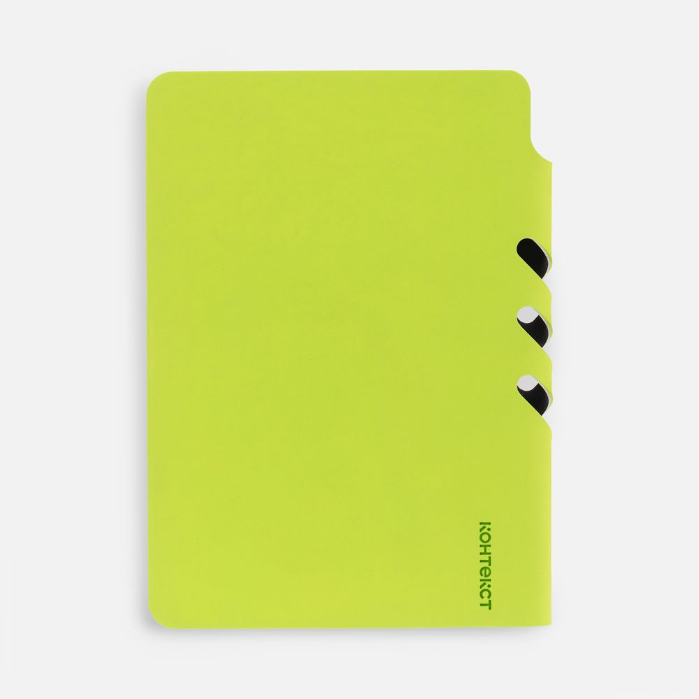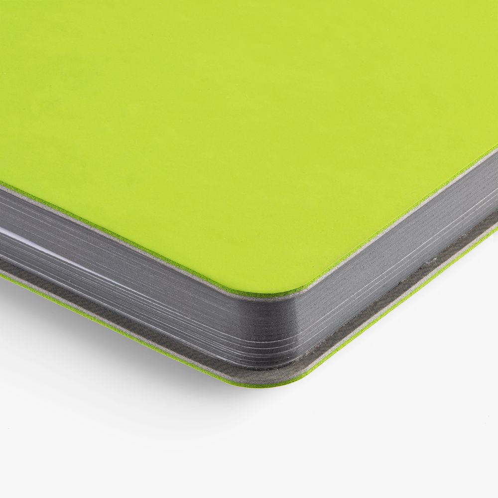 Ежедневник с гибкой обложкой выполнен из материала Soft Touch, светло-зеленый YY и серого Latte (внутренняя часть обложки).