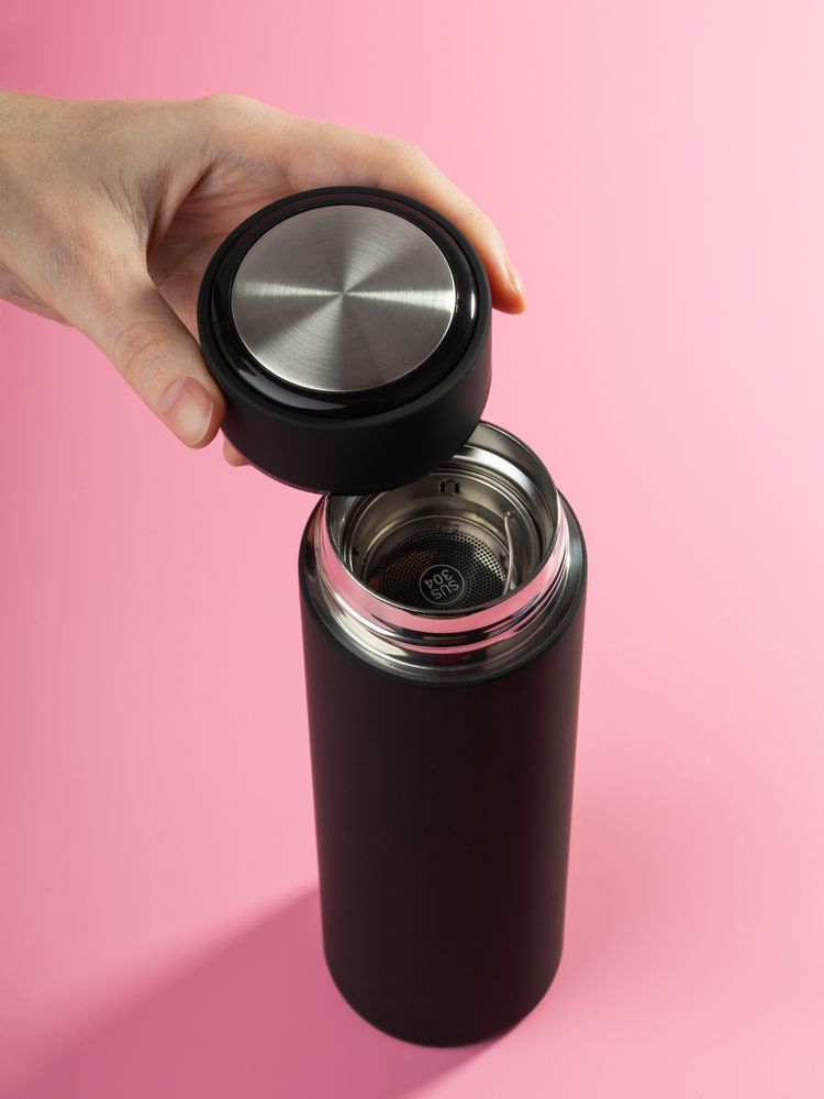Компактный термос Percola пригодится и в городе, и на природе. Съемное ситечко поможет заварить чистую чашку чая или кофе, а цилиндрический корпус даст широкие возможности для маркетинговых сообщений.