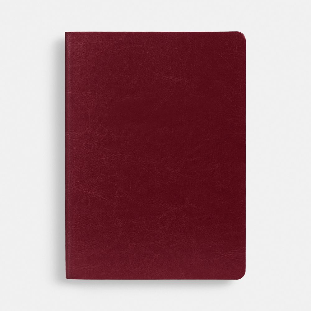 Модная интерпретация статусного ежедневника — с металлизированным обрезом и гибкой обложкой. Ежедневник с гибкой обложкой, выполнен из материала Nebraska, винный SS, дополнен ляссе бордового цвета.