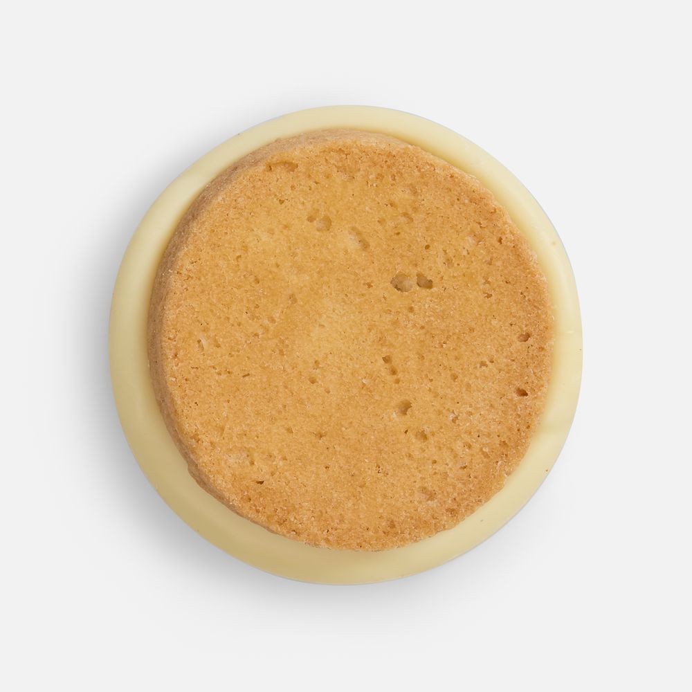 Песочное печенье, глазированное натуральным белым шоколадом.