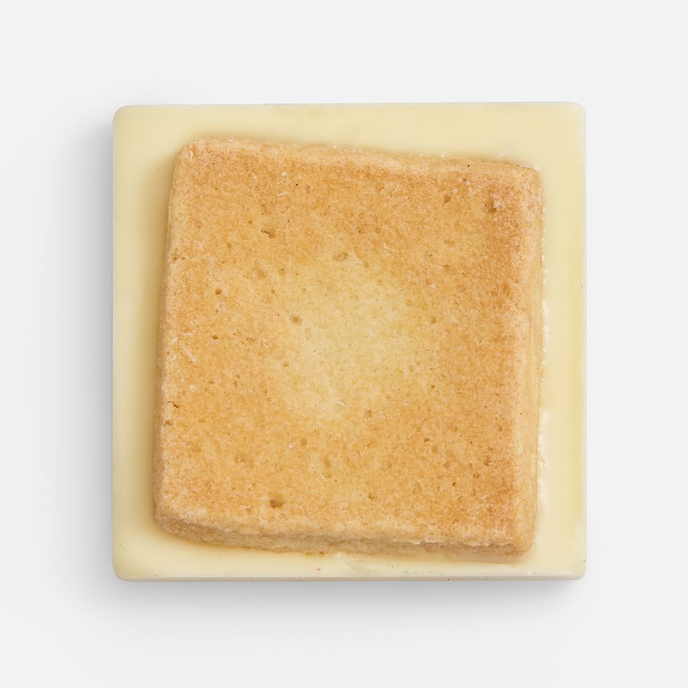 Песочное печенье глазированное натуральным белым шоколадом.