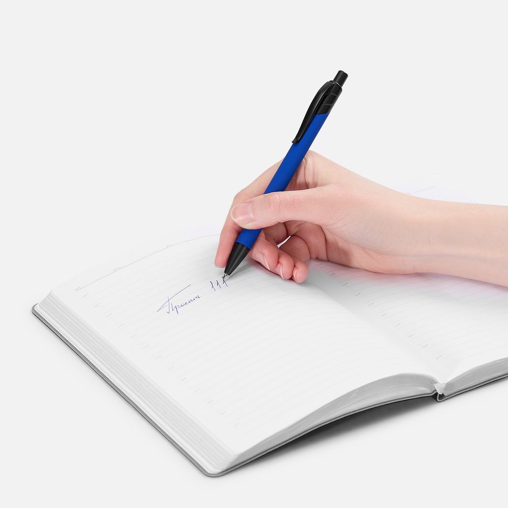 Металлическая шариковая ручка с покрытием софт-тач и черными матовыми деталями.