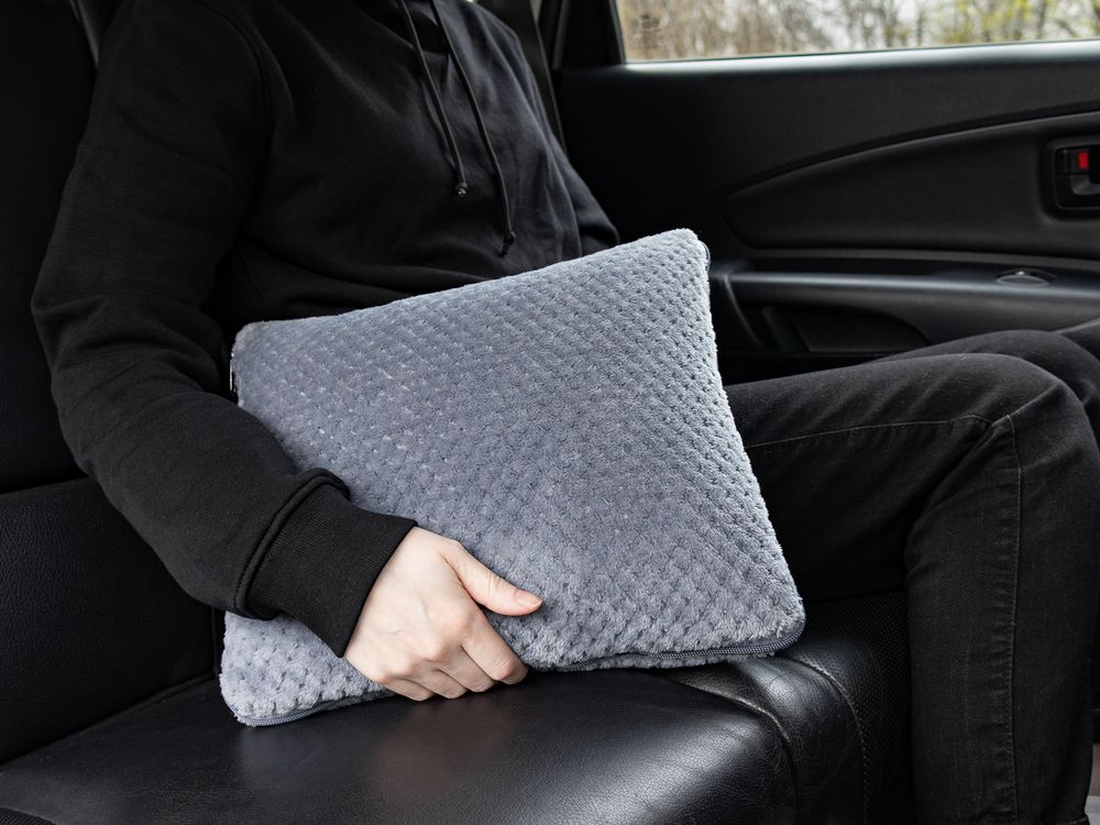 Мягкий плед из длинноворсового флиса легко трансформируется в подушку для удобного хранения — и сладкой послеобеденной дремы.