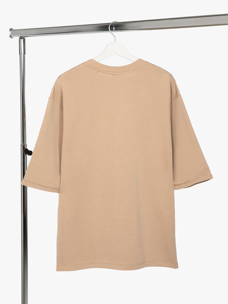 Футболка унисекс свободного кроя со спущенным плечом и смещенными плечевыми швами.