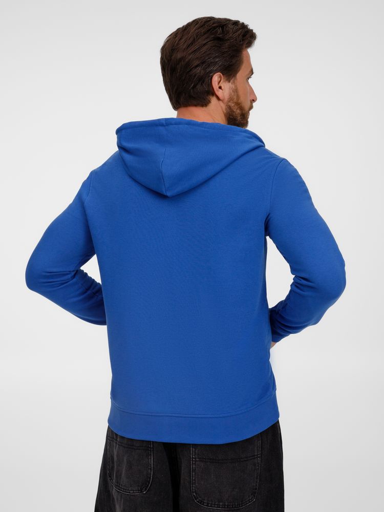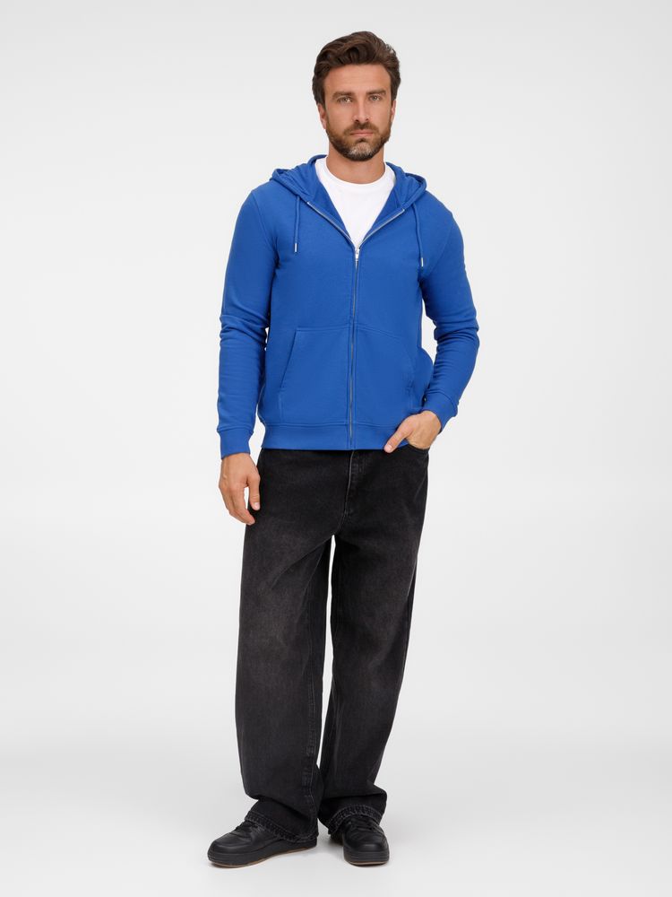 Базовая толстовка унисекс на молнии выполнена из органического хлопка и переработанного полиэстера.