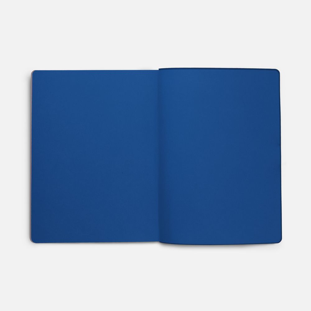 Гибкая обложка выполнена из материала Soft Touch Ultra, синий НН и Latte, синий НН (внутренняя часть обложки). Внутри корешка — специальное место для крепления ручки размером до 15х1 см.