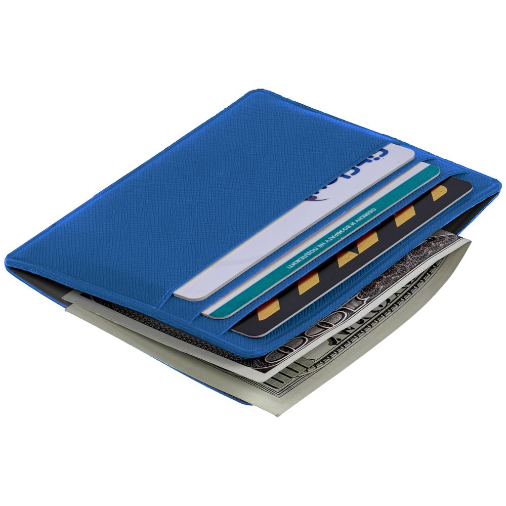 Компактный чехол для 6 карточек и сложенных купюр, который с успехом заменит объемный кошелек. Чехол для карточек из искусственного материала, имитирующего сафьяновую кожу, с шестью отделениями для кредитных карт и одним — для сложенных купюр.