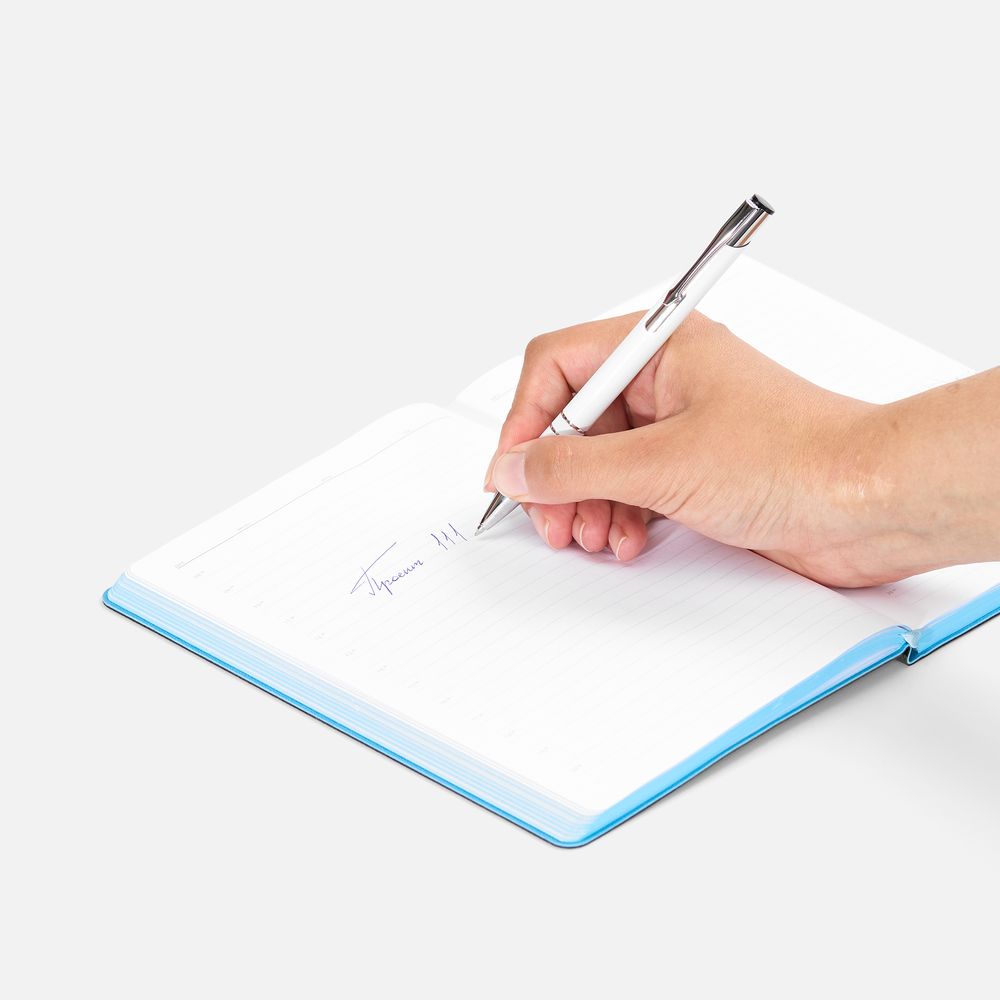 Яркая шариковая ручка с глянцевым цветным корпусом и хромированными деталями.