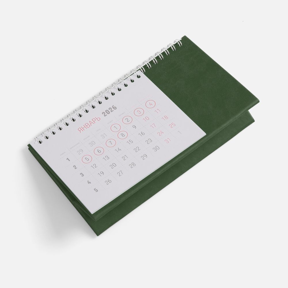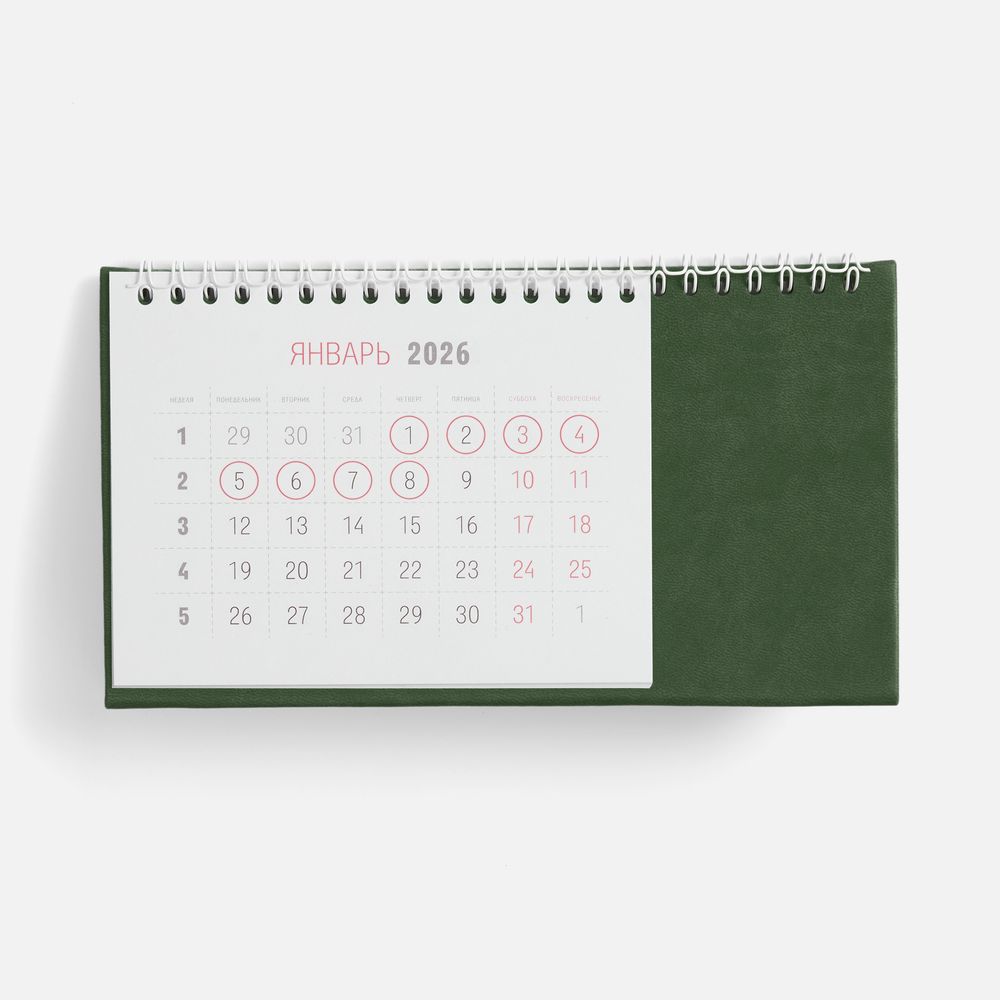 Календарь на 2026 год.Настольный, перекидной календарь-домик выполнен из материала Latte, зеленый FF.