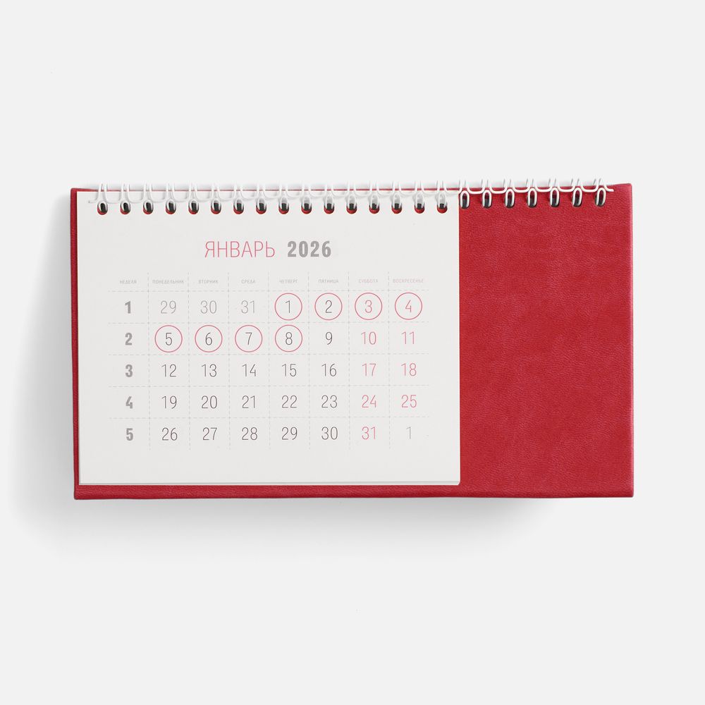 Календарь на 2026 год.Настольный, перекидной календарь-домик выполнен из материала Latte, красный РР.