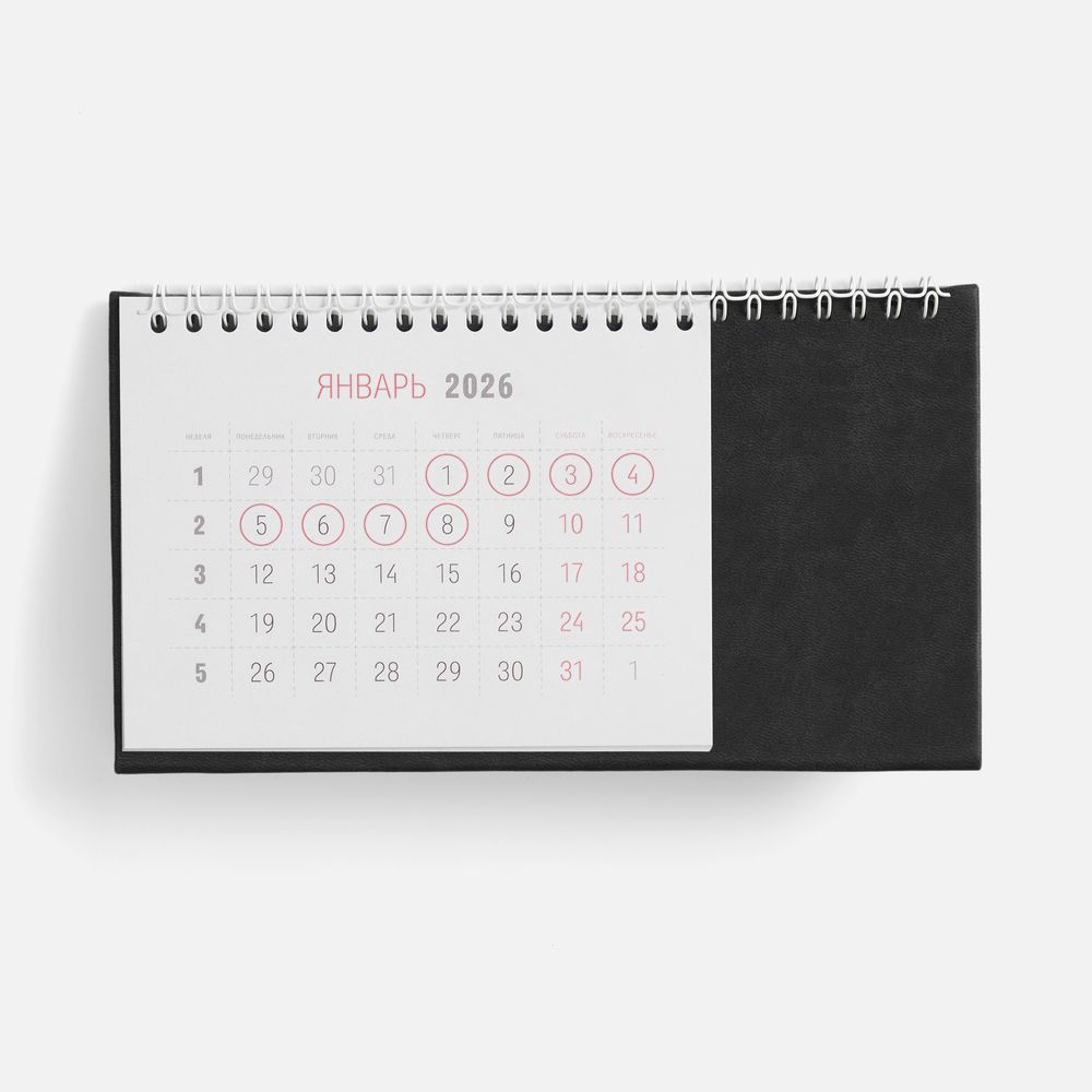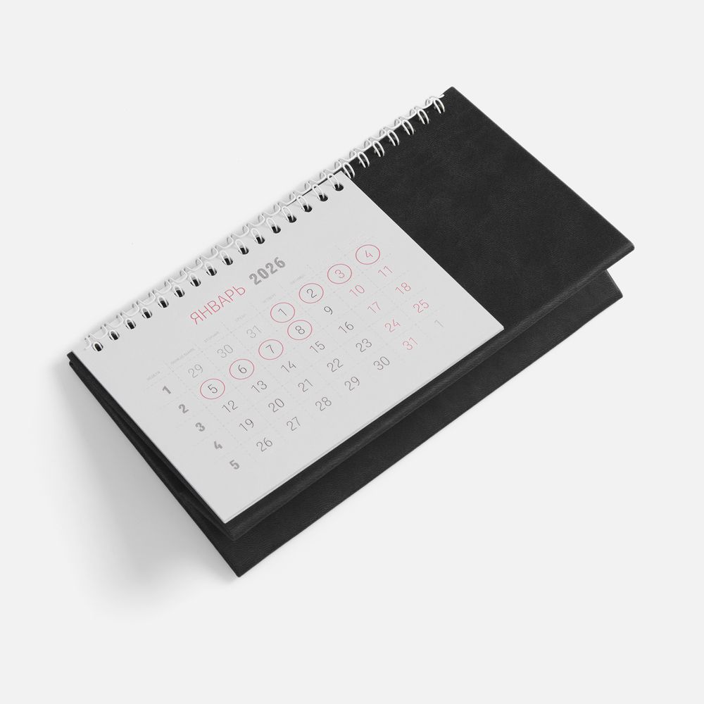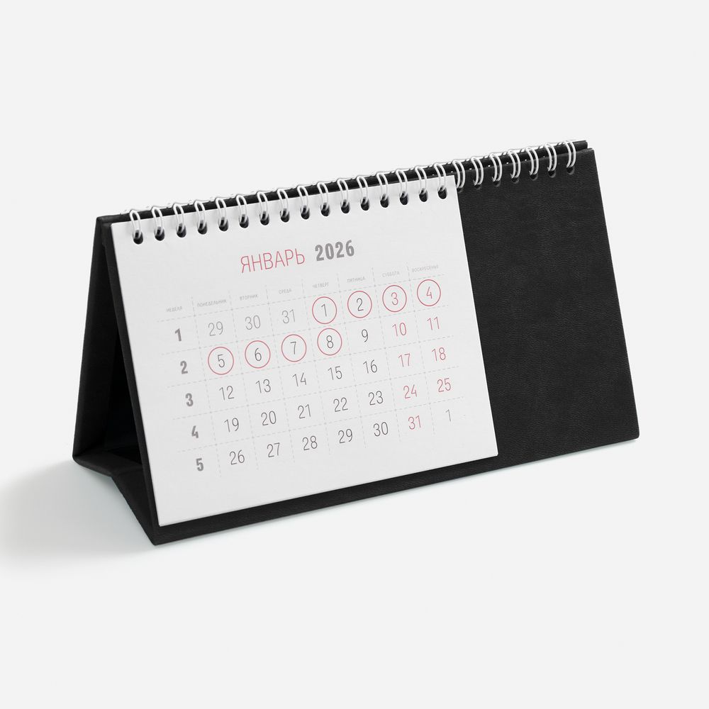 Календарь на 2026 год.Настольный, перекидной календарь-домик выполнен из материала Latte, черный АА.