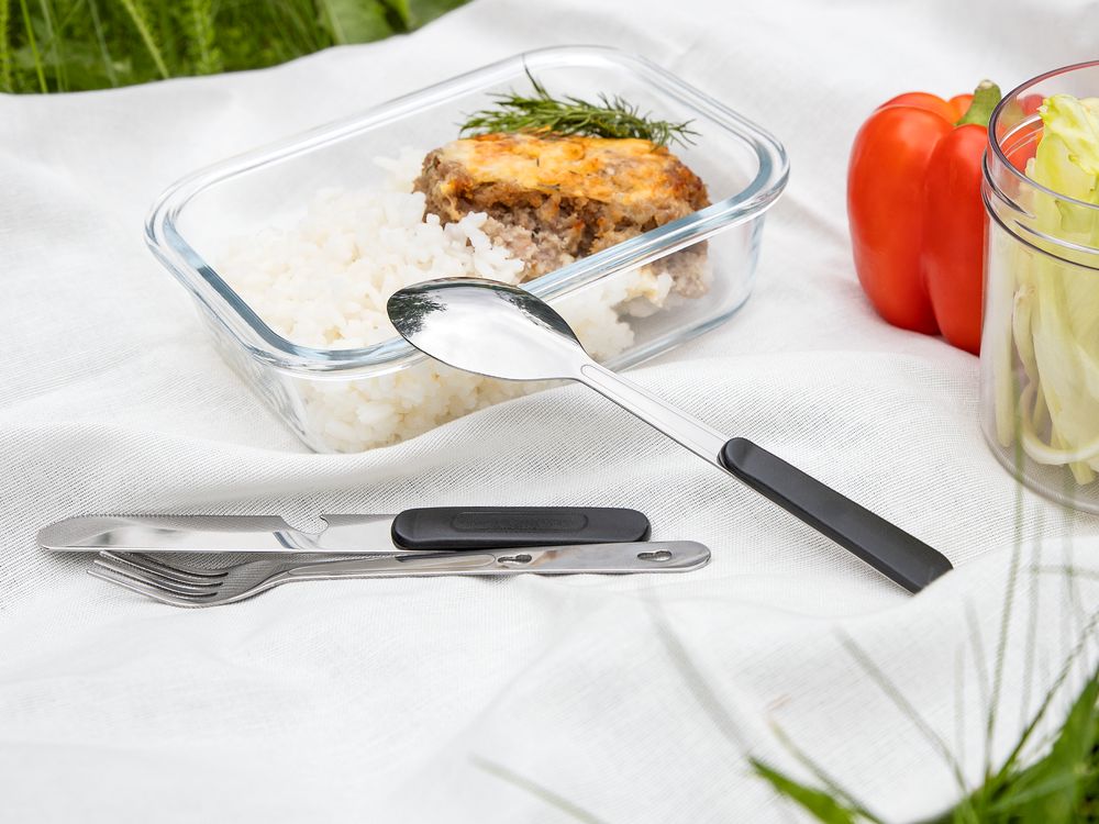 Набор столовых приборов Campsite — неотъемлемая часть любого похода или пикника. С таким компактным набором любое времяпрепровождение на свежем воздухе станет заметно комфортнее: ложка, вилка и нож не занимают много места и легко раскладываются на три отдельных прибора для использования по назначению.