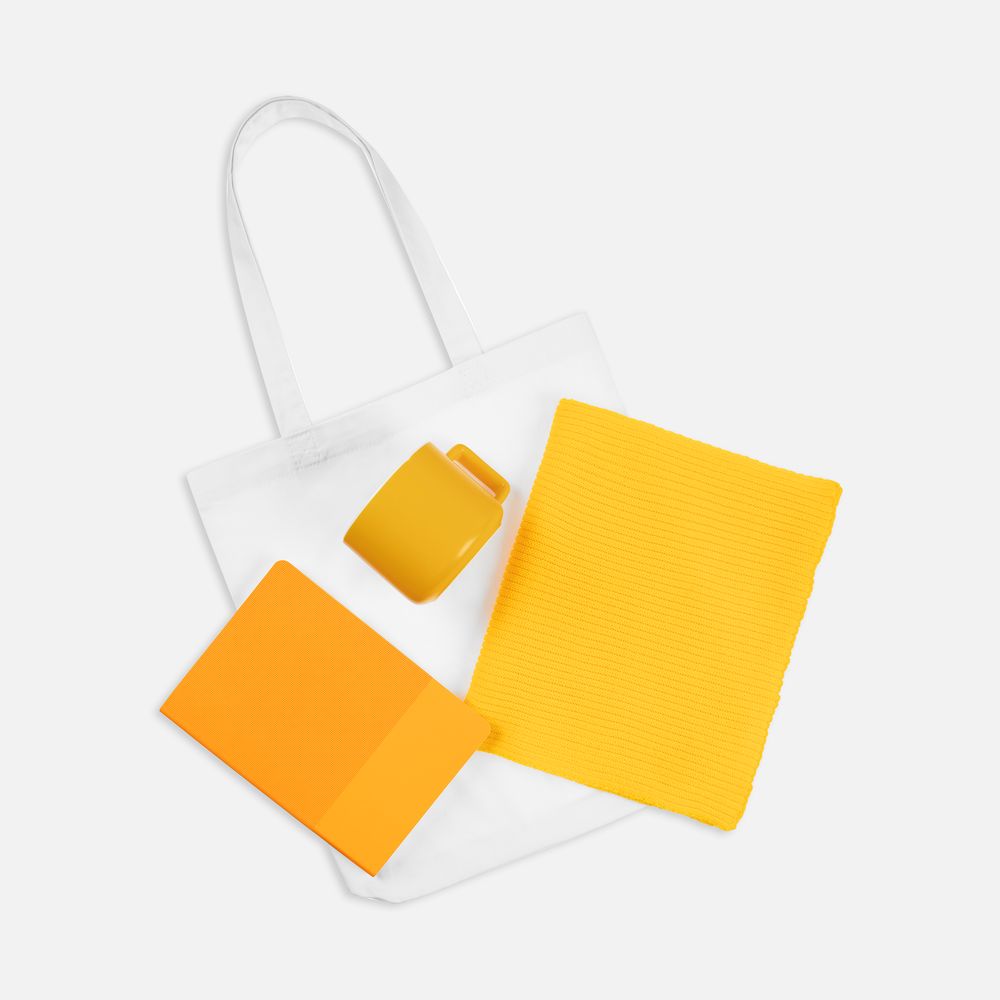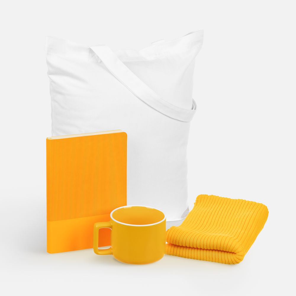 • Материал: сумка - хлопок 100%; шарф - акрил 100%; ежедневник - искусственная кожа; кружка - каменная керамика