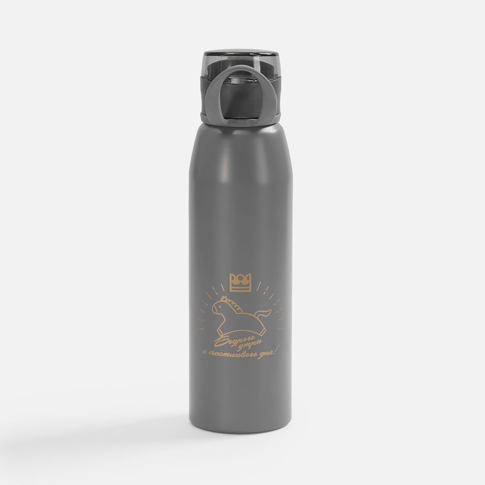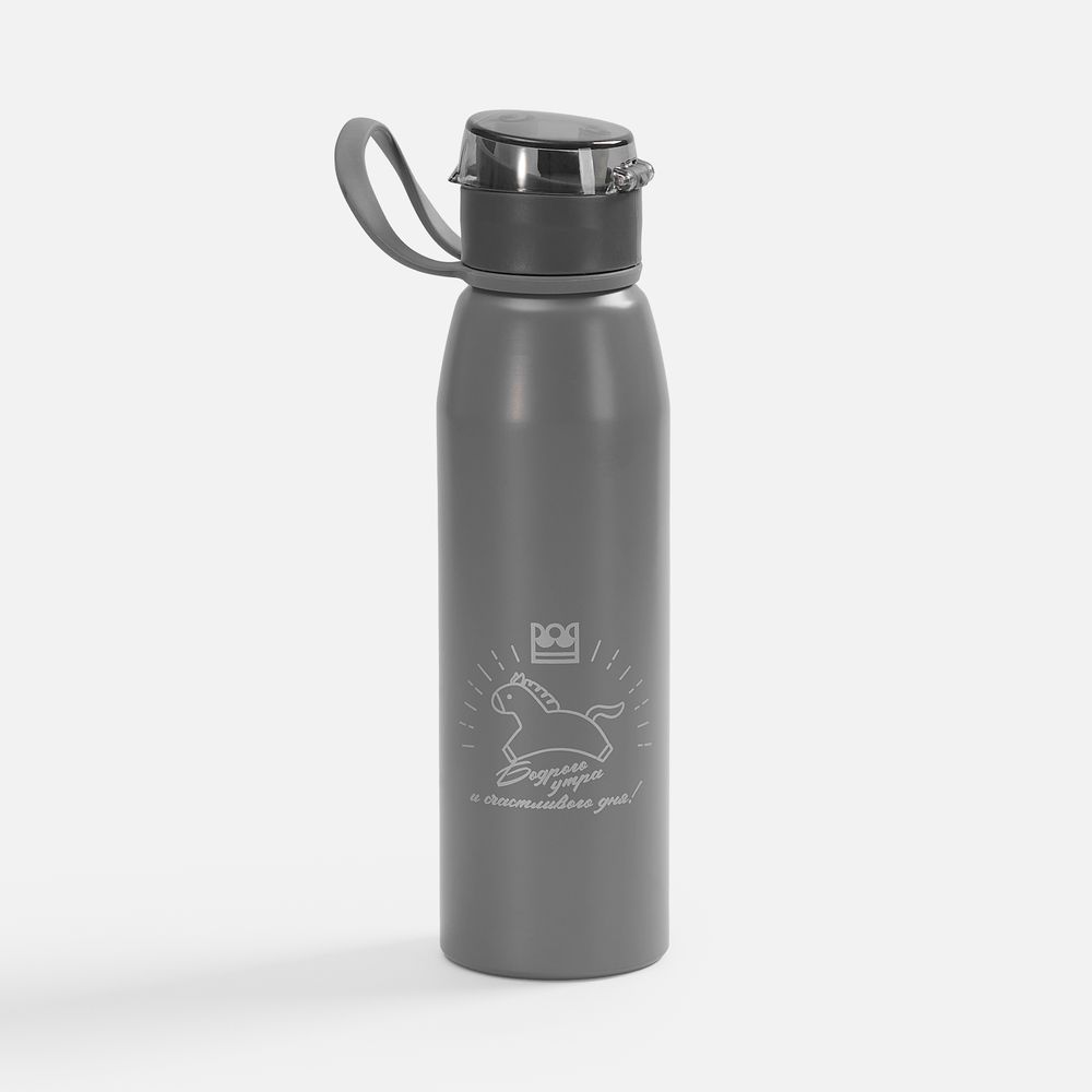 Легкая бутылка для спорта с откидной крышкой и силиконовой петлей для удобной транспортировки.
