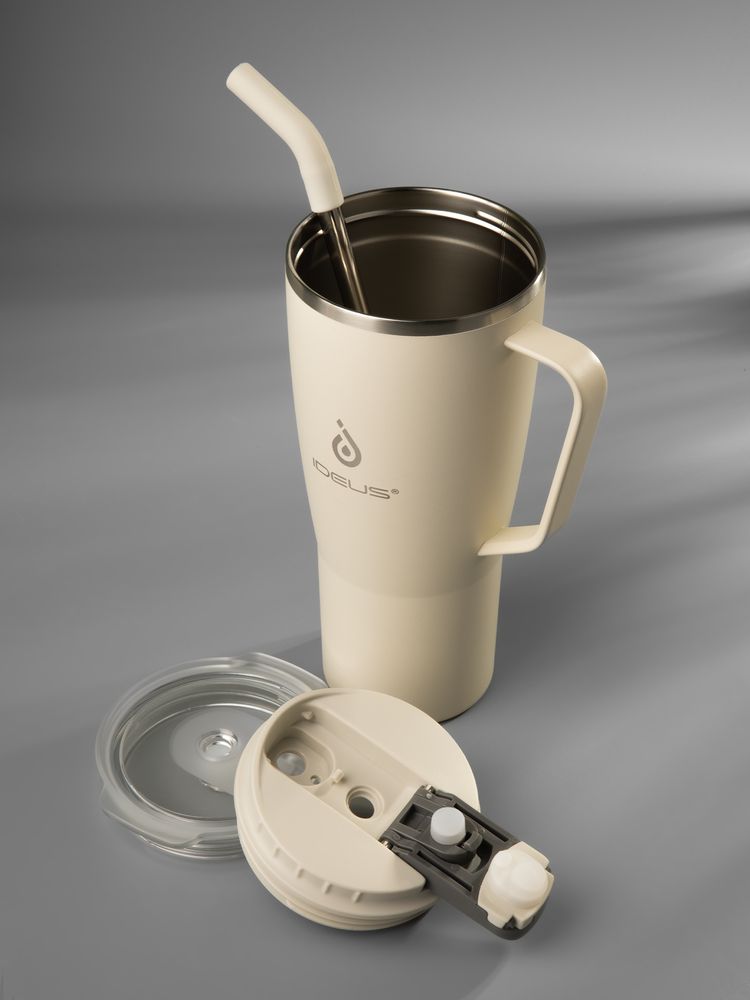 • Материал: корпус - нержавеющая сталь, 18/8; крышка - пластик; трубочка - нержавеющая сталь, пищевой силикон