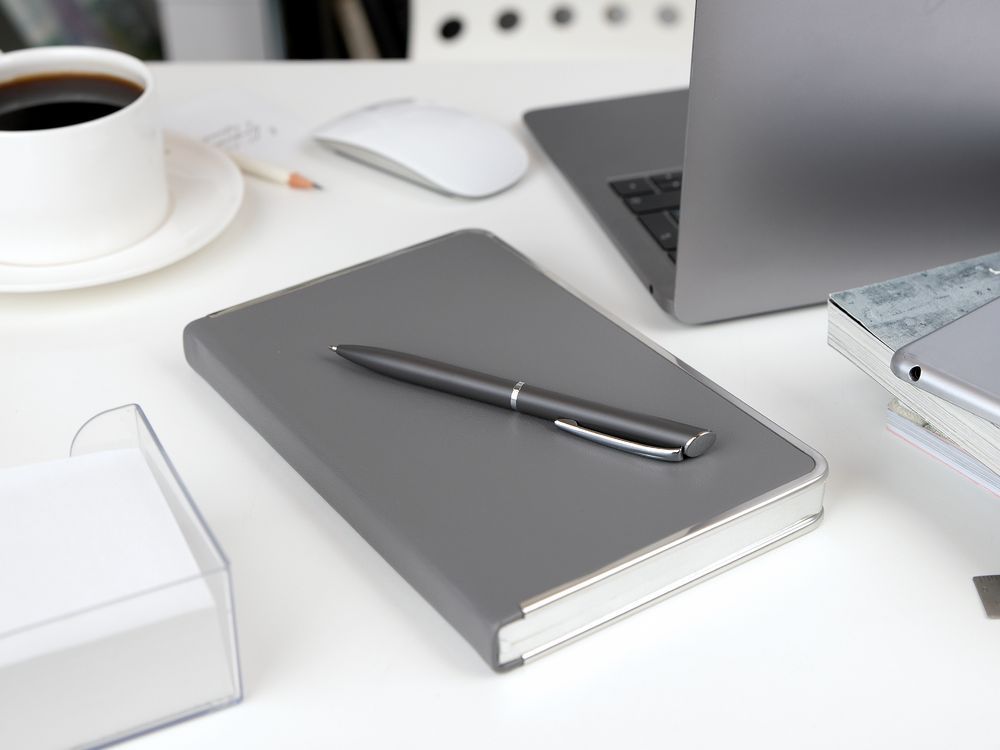 Классическая металлическая ручка с матовым покрытием и хромированными деталями.