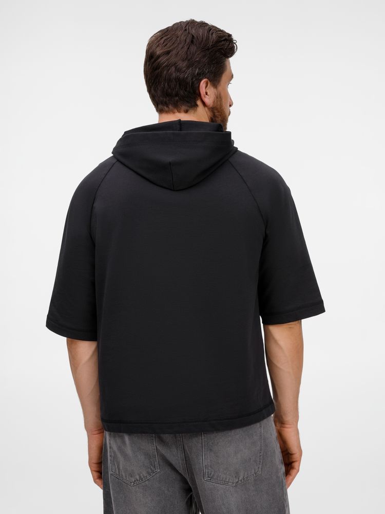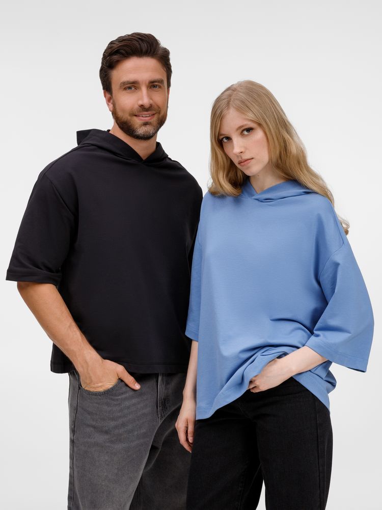 Нестандартная футболка Neofit с капюшоном создана для тех, кто следит за трендами и ценит комфорт. Фигурные рукава по передней полочке подчеркивают уникальность изделия, а продуманная конструкция рукавов реглан сзади обеспечивает свободу движений.