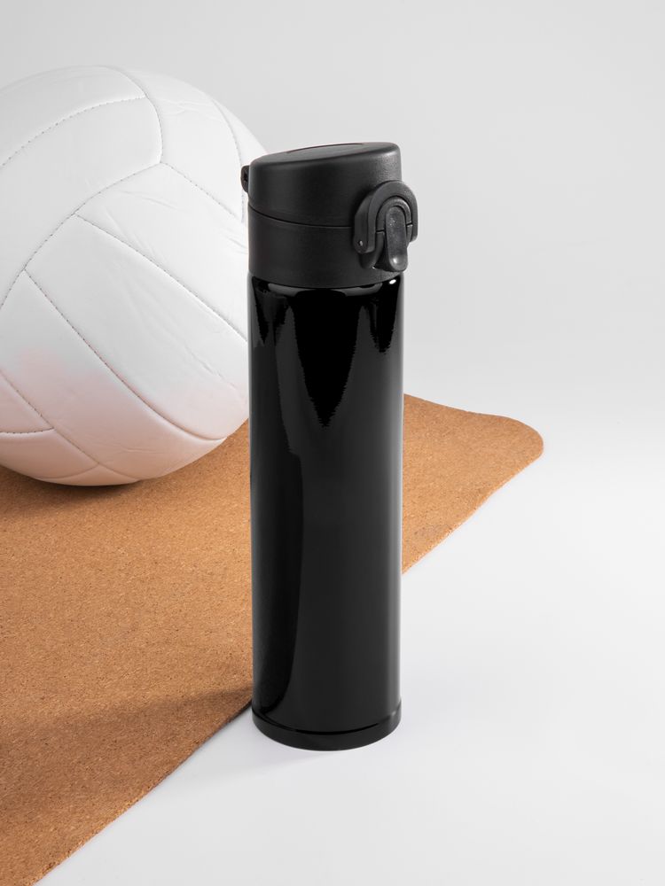 Термостакан Eimer в ровном цилиндрическом корпусе — эстетически приятная форма, на которую удобно делать круговое нанесение. Крышку с отщелкивающимся клапаном легко открыть одной рукой.