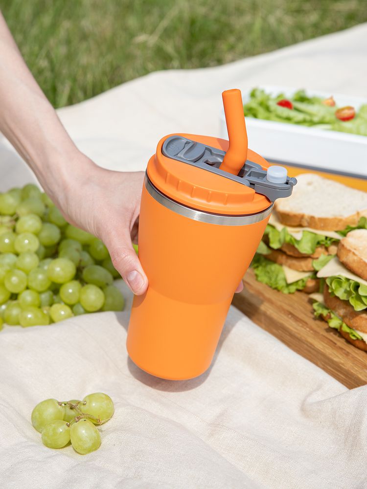 • 2 крышки в комплекте: одна на 100% герметичная с механизмом блокировки отверстия для питья, вторая — с отверстием для трубочки