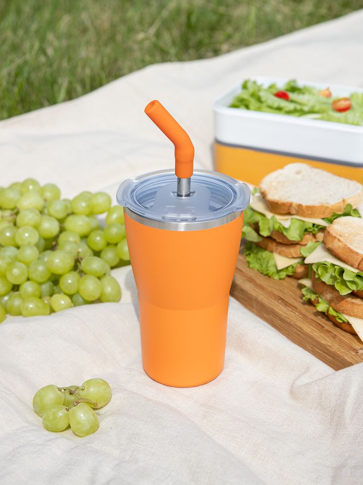 • Материал: корпус - нержавеющая сталь, 18/8; крышка - пластик; трубочка - нержавеющая сталь, пищевой силикон