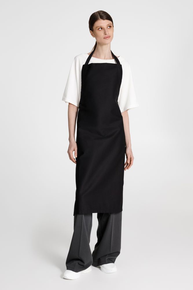 Базовый фартук разработан в рамках единой коллекции одежды и аксессуаров и легко комбинируется с ее элементами. Специально спроектированные лекала и технологии пошива открывают простор для любых вариантов кастомизации и нанесения изображений. На видимой части изделий нет лейблов с айдентикой бренда, а название бренда с уходника легко удалить.
