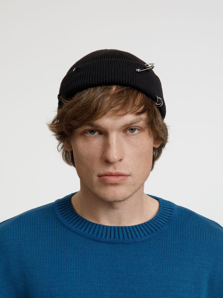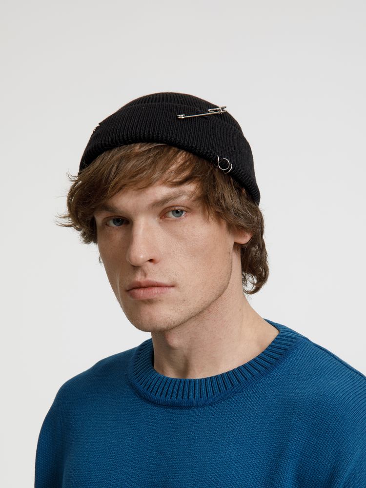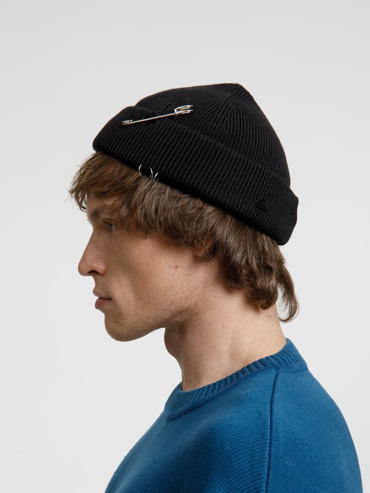 Однослойная шапка бини с рваным отворотом и металлическими аксессуарами для дерзких образов в любом возрасте. Яркий и запоминающийся акцент в стиле гранж. Поставляется в пакете с липким краем.
