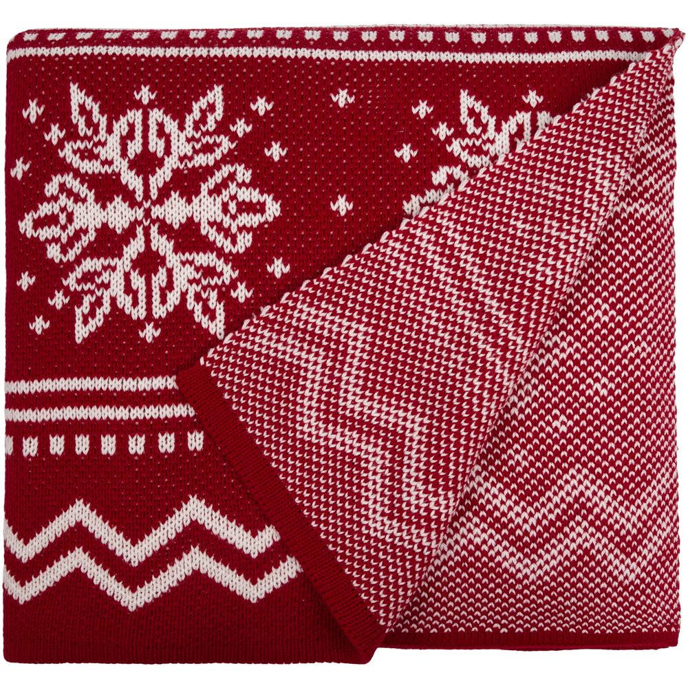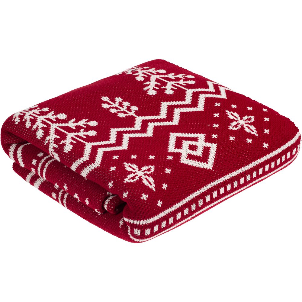 Плед с вывязанным логотипом и индивидуальным рисунком в фирменной цветовой гамме.