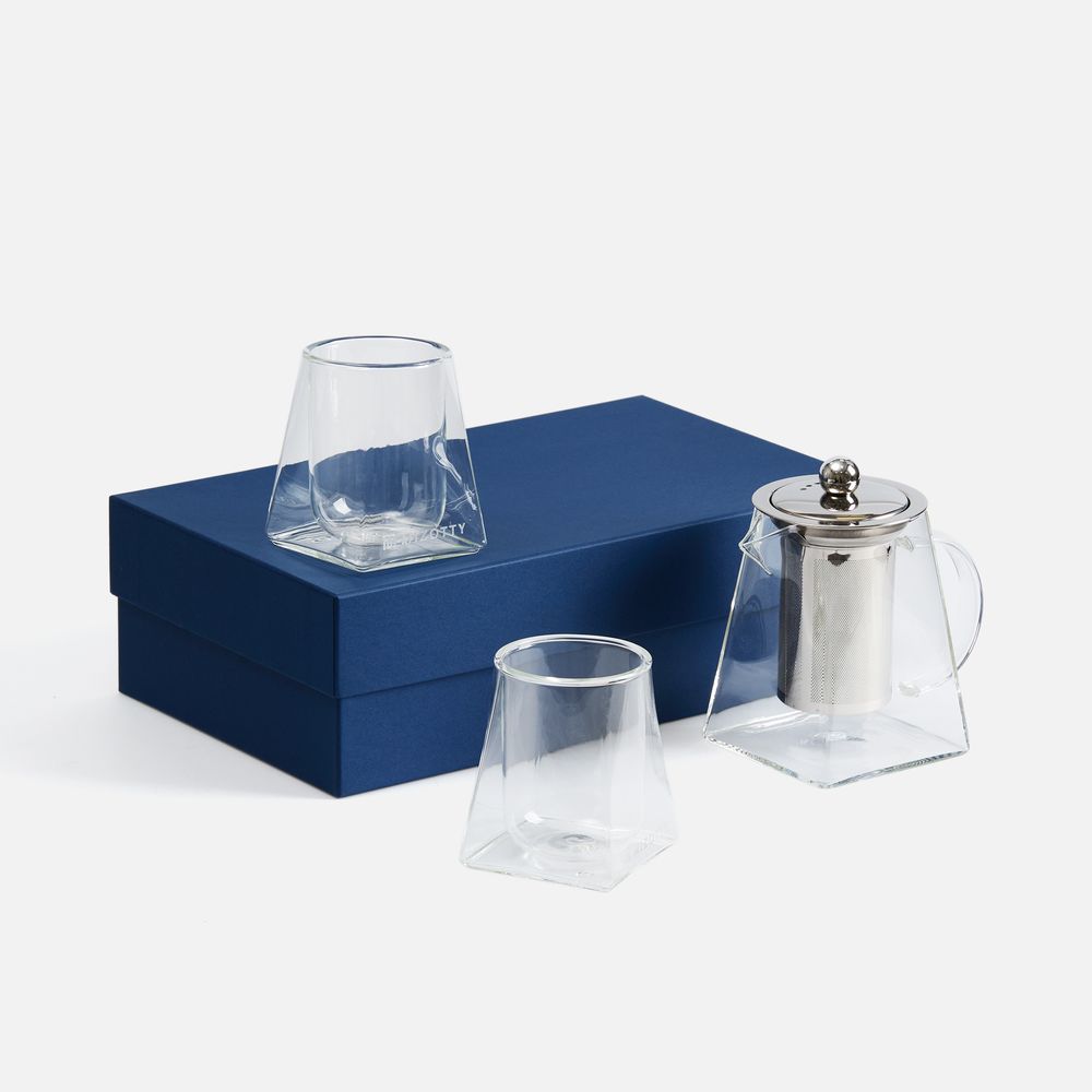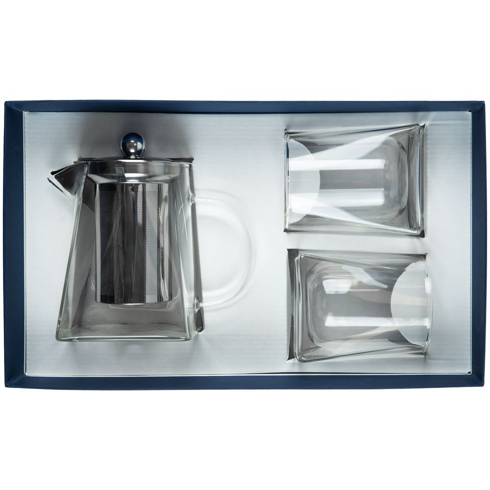 • Материал: чайник, стаканы - боросиликатное стекло; крышка и сито - нержавеющая сталь; коробка - переплетный картон