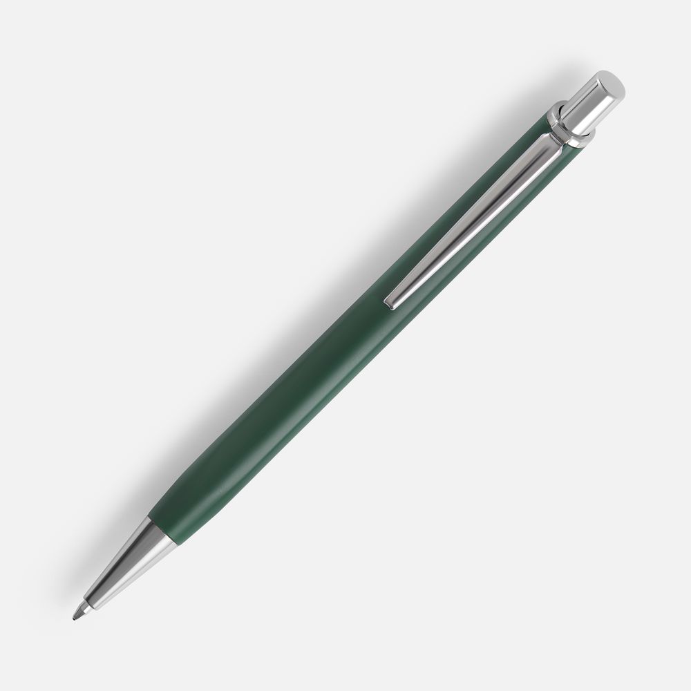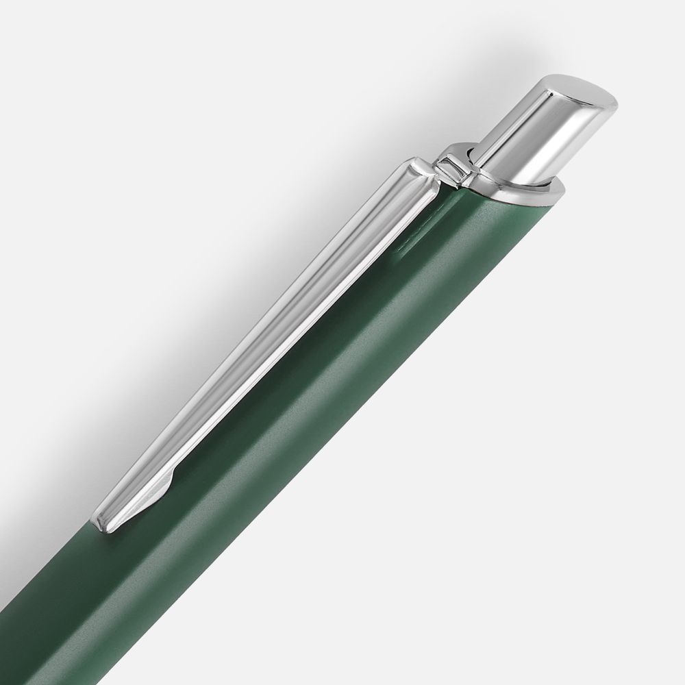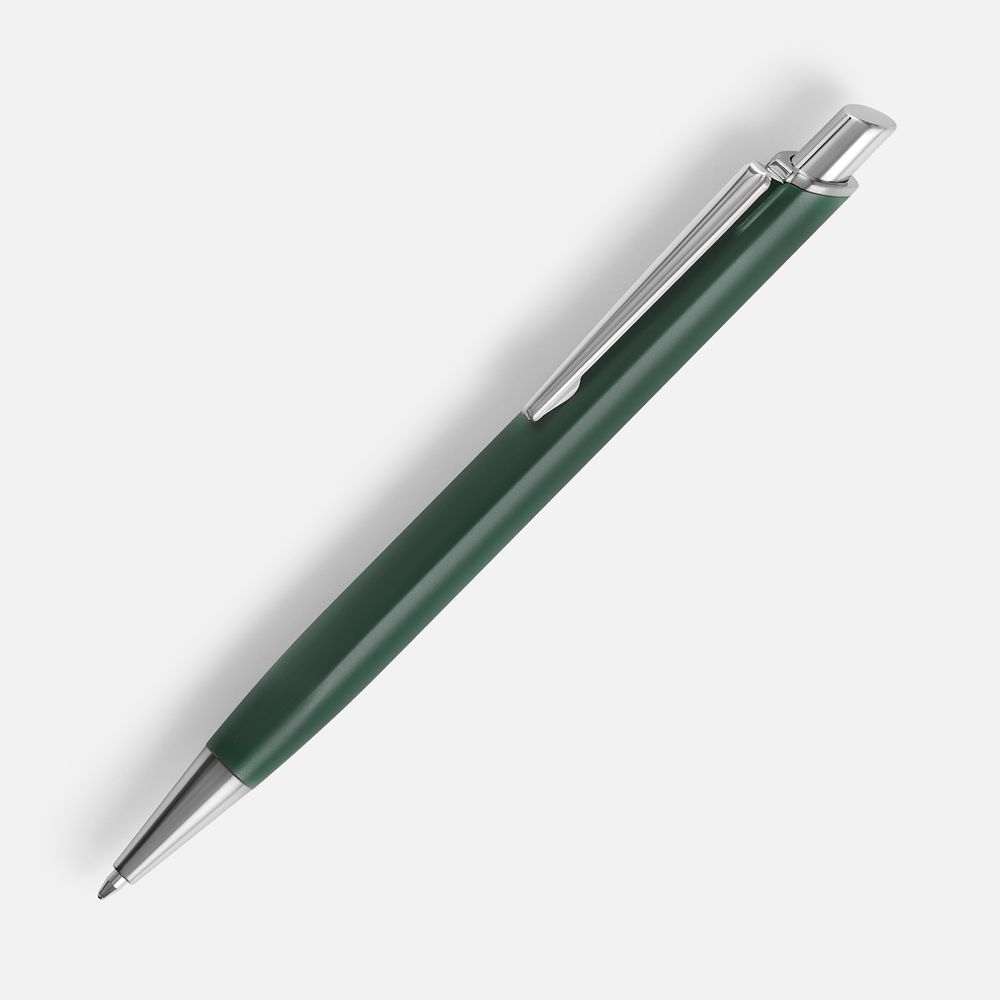 Металлическая ручка с матовым корпусом и хромированными деталями.
