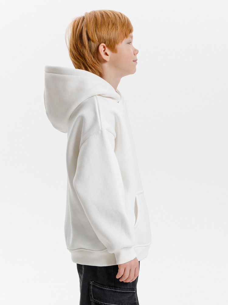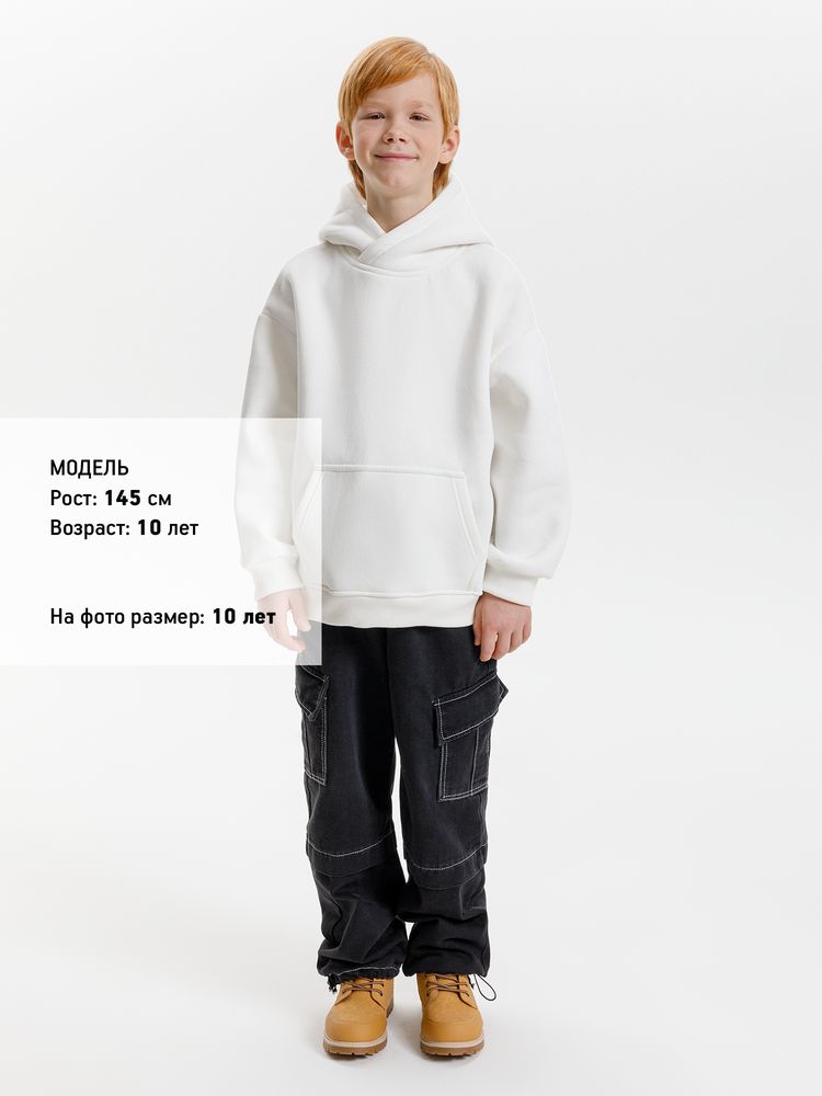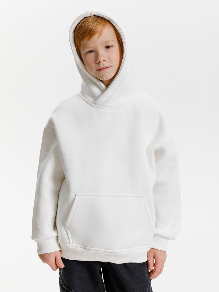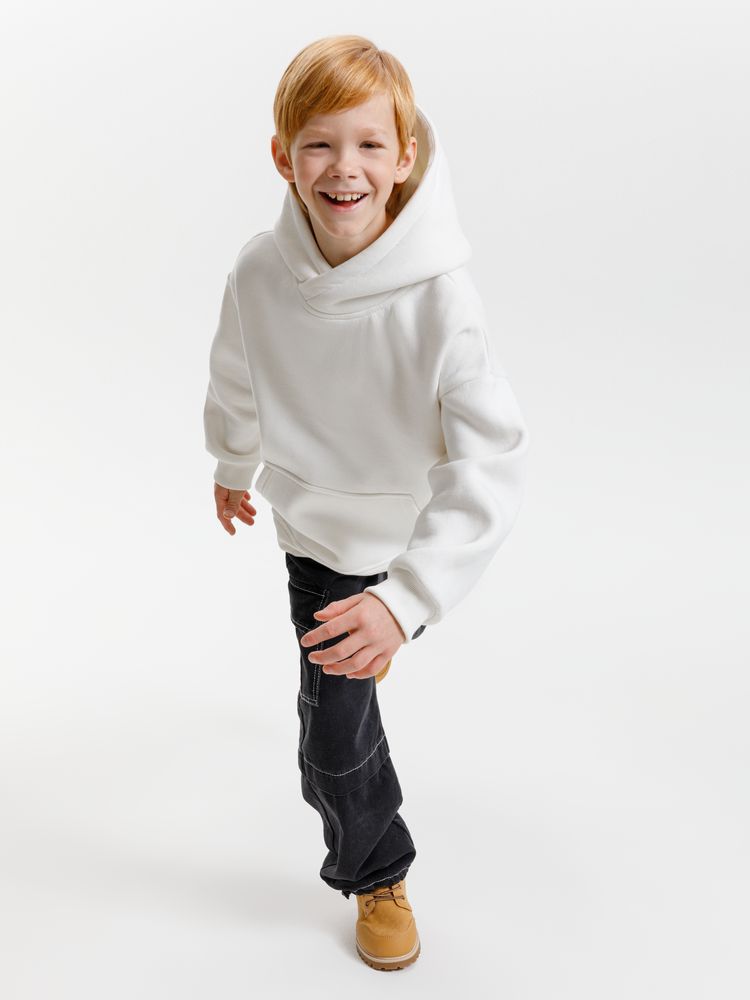 Детское худи унисекс со спущенным плечом и карманом-кенгуру.